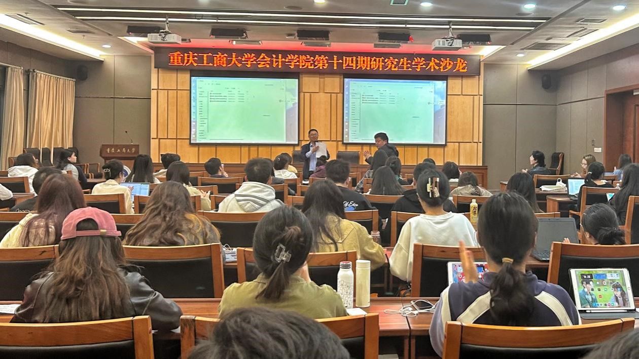 本次沙龙有4名同学进行了论文汇报。汇报学生分别就研究背景、研究设计、进一步分析、主要结论与政策建议等方面进行了论文汇报。赵玲莉汇报数字金融、客户集中度与企业投资效率;王晶汇报基于SFIC模型的生态审计协同框架与机制探讨;钟晶星汇报财务共享模式下企业财会监督的体系构建与机制创新;戴家琳汇报国际会计学研究现状、主题脉络及热点研究——基于SSCI的文献计量分析。