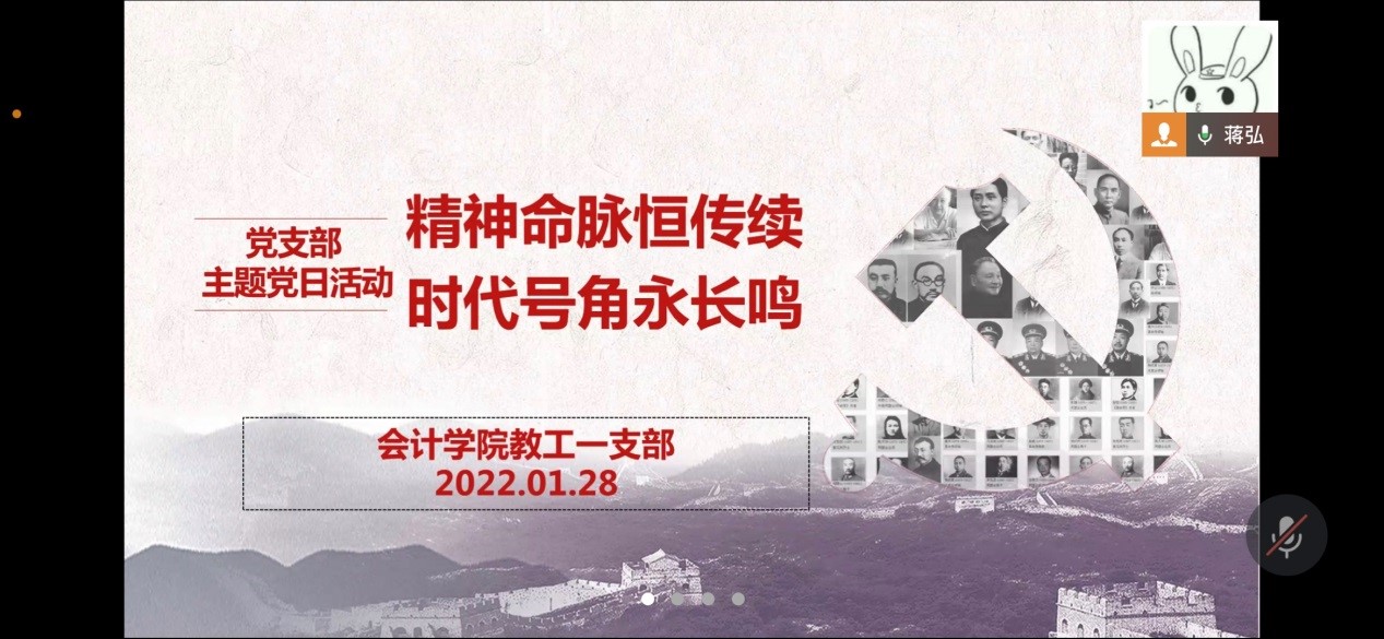 2022年1月28日,OK138太阳集团教工第一党支部通过企业微信召开了名为“精神命脉恒传续,时代号角永长鸣”的主题党日活动。活动由支部书记蒋弘主持,教工一支部全体党员准时参会。