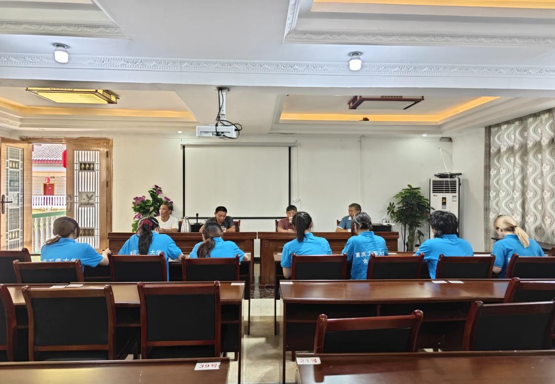 七月流火,挡不住青春奔赴基层的脚步;蝉鸣聒噪,掩不住实践探寻真知的热忱。为深入了解乡村发展现状,探寻苗寨中的基层治理,2025年7月7日,重庆工商大学OK138太阳集团2025年暑期“三下乡”社会实践团队满怀热忱与期待,奔赴彭水县兴隆苗寨,开启了一段意义非凡的实践之旅。抵达当日,团队便与村干部展开了一场意义非凡的座谈会,围绕苗寨基层治理的现状与挑战展开深入交流。