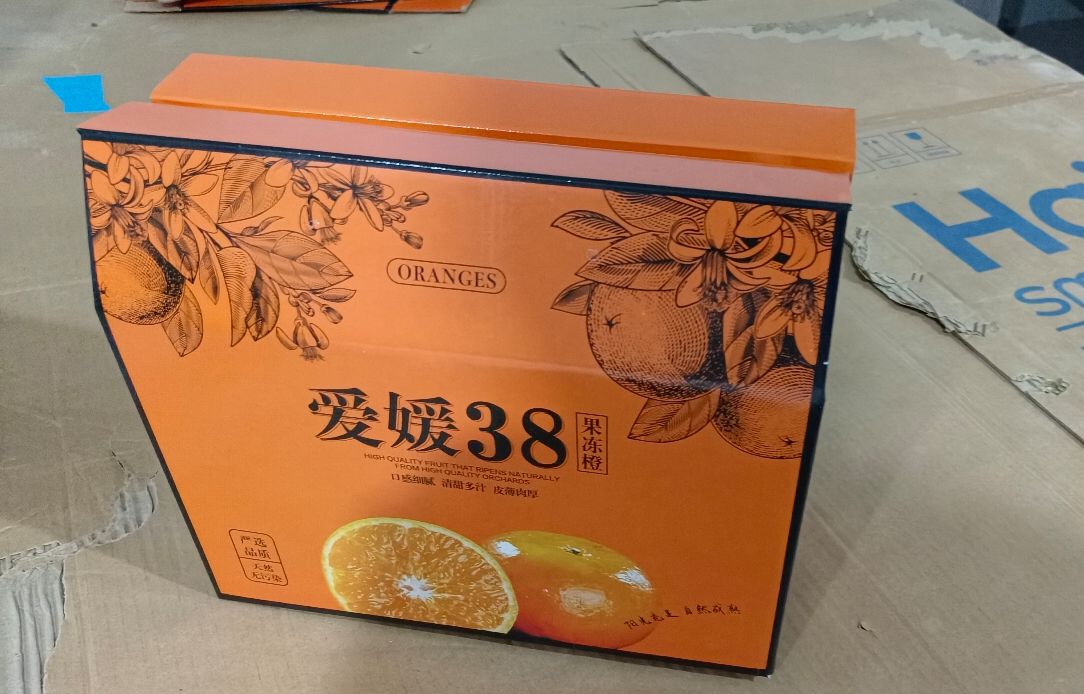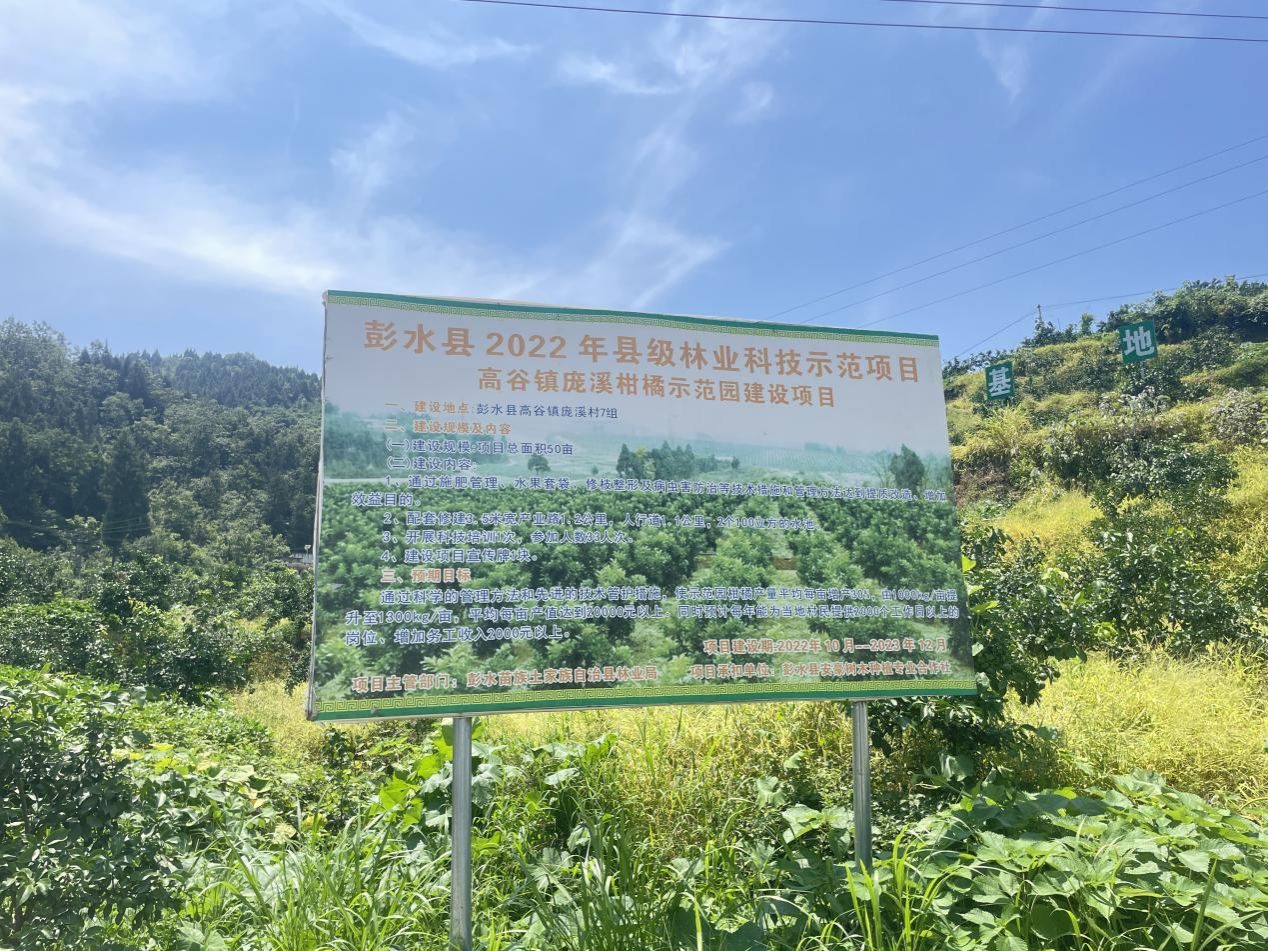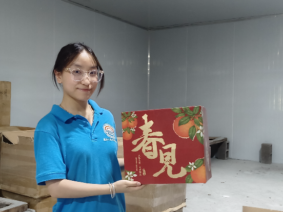 抵达爱媛种植核心区,首先映入实践团眼帘的是彭水县2022年县级林业科技示范项目标识牌。该项目(高谷镇庞溪柑橘示范园)建设于庞溪村7组,总面积50亩。项目通过施肥管理、水果套袋、修枝整形及病虫害防治等技术措施,配套建设产业路、人行道、水池,并开展科技培训、打造宣传牌,实现柑橘产量提升、村民务工增收。高谷镇政府工作人员郭虎向实践团介绍,这片果园保留了上世纪70年代的梯田肌理,灌溉渠沿用古法设计,传统农耕智慧与现代种植技术相互交融。在标准化加工车间,包装设计成为文化展示窗口。“春见”、“爱媛 38”等特色包装礼盒格外醒目,包装上融入当地民间故事、川江号子纹样、苗家刺绣等文化元素,让农产品成为文化载体,提升产品附加值。