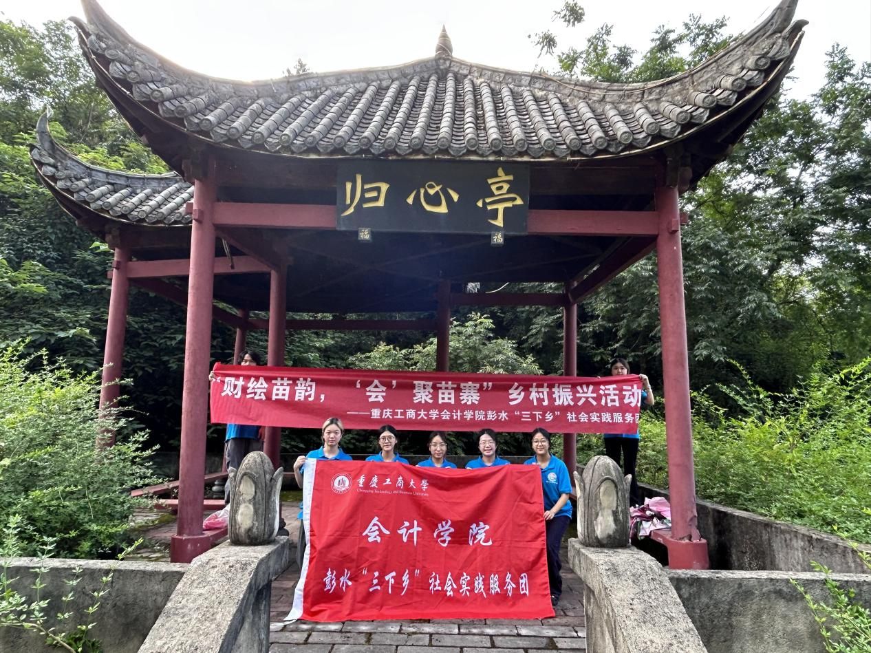 2025年7月9日,重庆工商大学OK138太阳集团“财经苗韵,‘会’聚苗寨”乡村振兴促进团全体成员在彭水县高谷镇兴隆苗寨开展“苗韵文化探源行”主题活动。本次活动聚焦苗寨独特建筑风貌与文化地标,通过实地踏勘登山步道沿线人文遗址,重点考察彭水县高谷镇归心亭,深度挖掘苗族文化遗产内涵,以财经专业视角赋能乡村文化振兴。