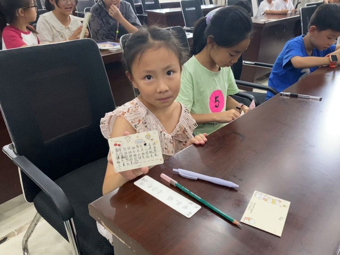 手工实践环节成为孩子们情感表达的温暖舞台。在友善心意卡上,孩子们用彩笔绘制太阳与花朵,写下“谢谢你昨天借我橡皮”的纯真告白;而在感恩家书里,一些孩子们用图画讲着心里的话:有的画了妈妈系着围裙在厨房做饭,锅灶边还特意添了冒热气的烟囱,旁边用铅笔歪歪扭扭写着“我爱你”。特别令人动容的是一位儿童的创作:信纸上三个牵手的小人旁写着“爸爸妈妈和我”,简单的线条里藏着对亲情的深切渴望。志愿者们用彩笔为这些稚嫩的作品勾勒边框,将孩子们的心意定格为承载家国情怀的“成长手札”。