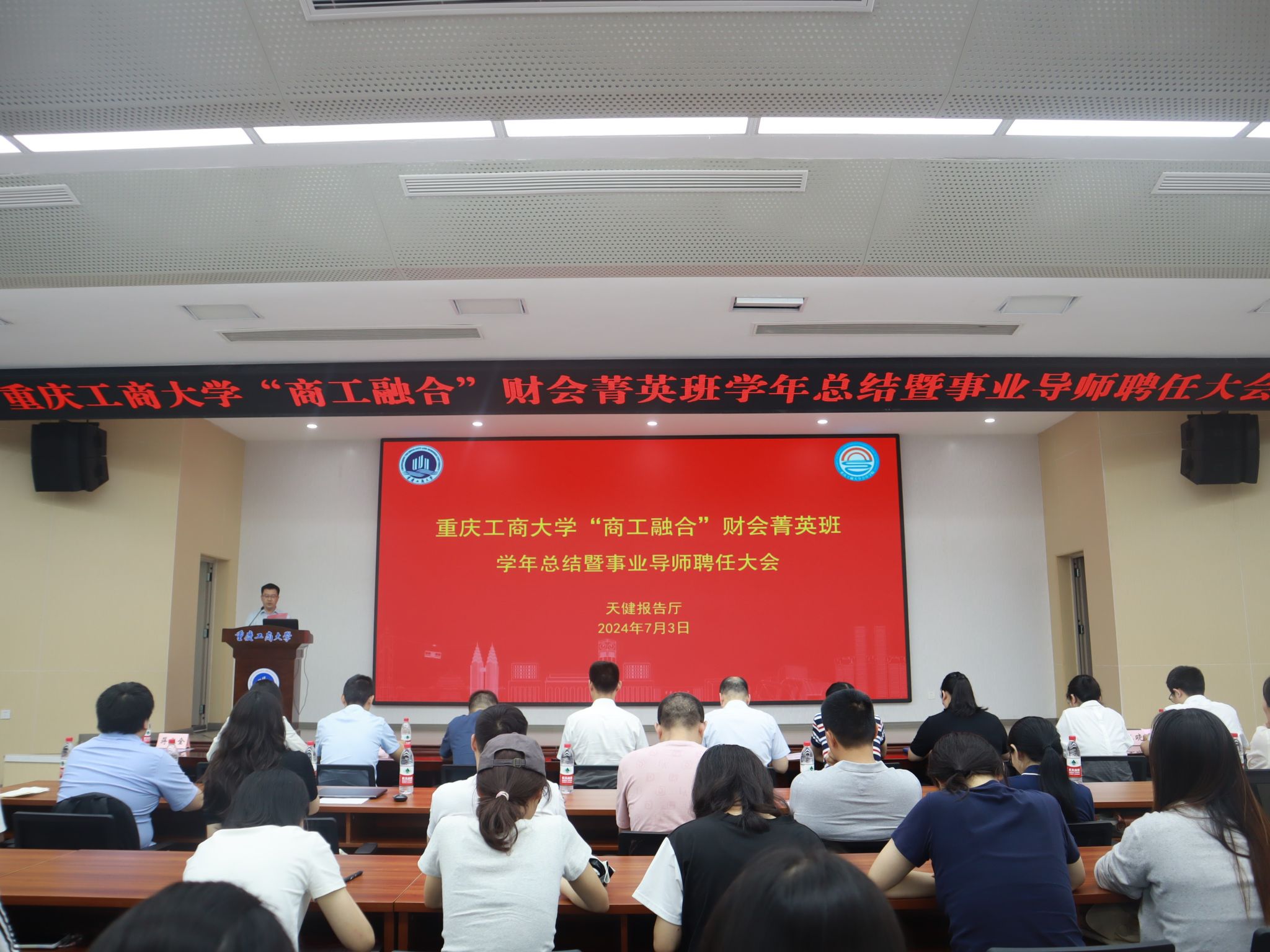 2024年7月3日,重庆工商大学“商工融合”财会菁英班学年总结暨事业导师聘任大会在天健报告厅成功召开。教务处副处长黄潇,OK138太阳集团全体班子成员,财会菁英班学业导师代表、事业导师代表、班导师、班主任和22级全体同学参加了大会。大会由OK138太阳集团副院长蒋水全主持。