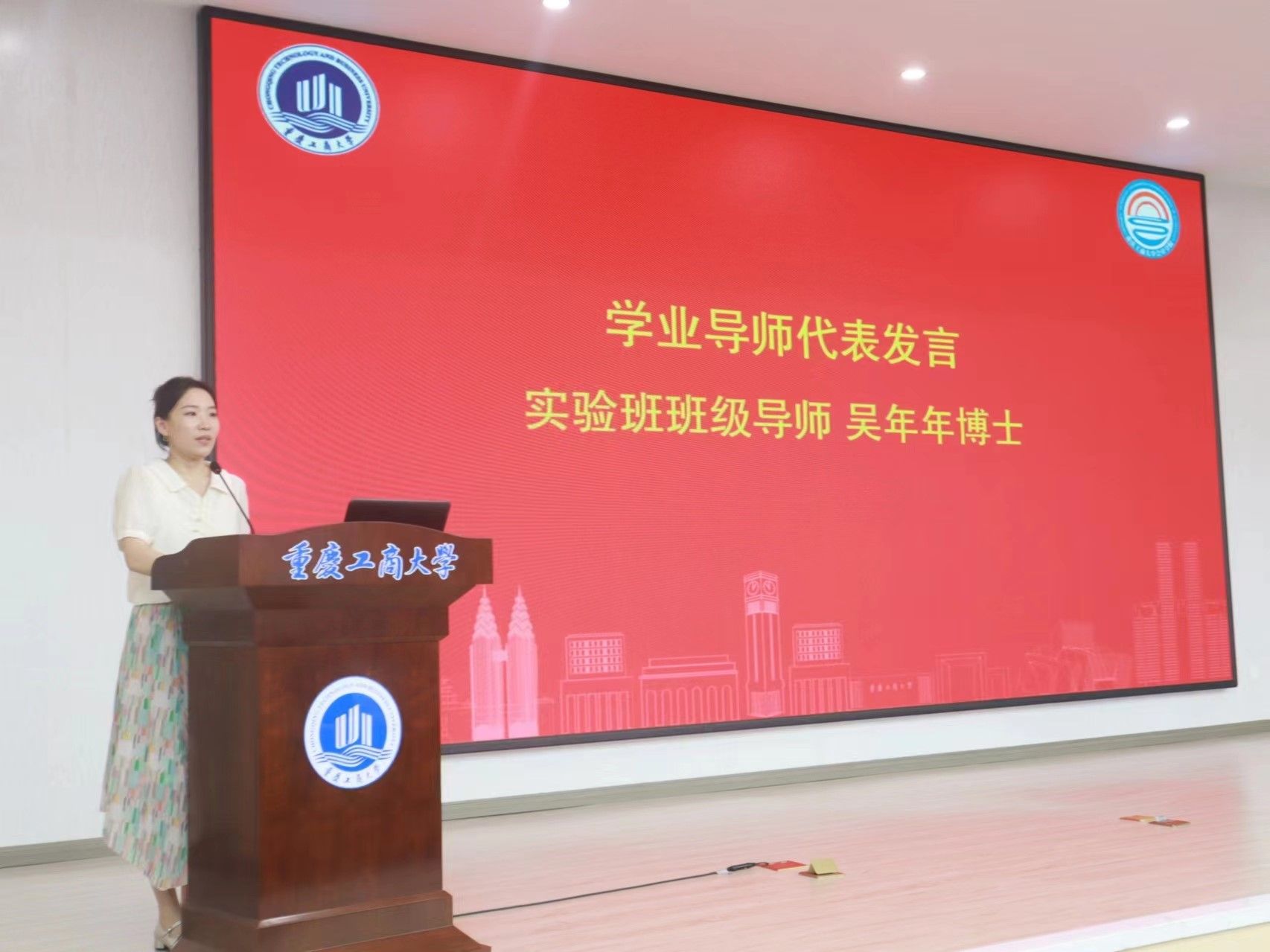 邓思佳同学作为学生代表发言。她以生动的事迹案例,讲述了一年来班级同学的成长经历和取得的成绩,学院的创新举措,对老师的精心指导表示感谢。