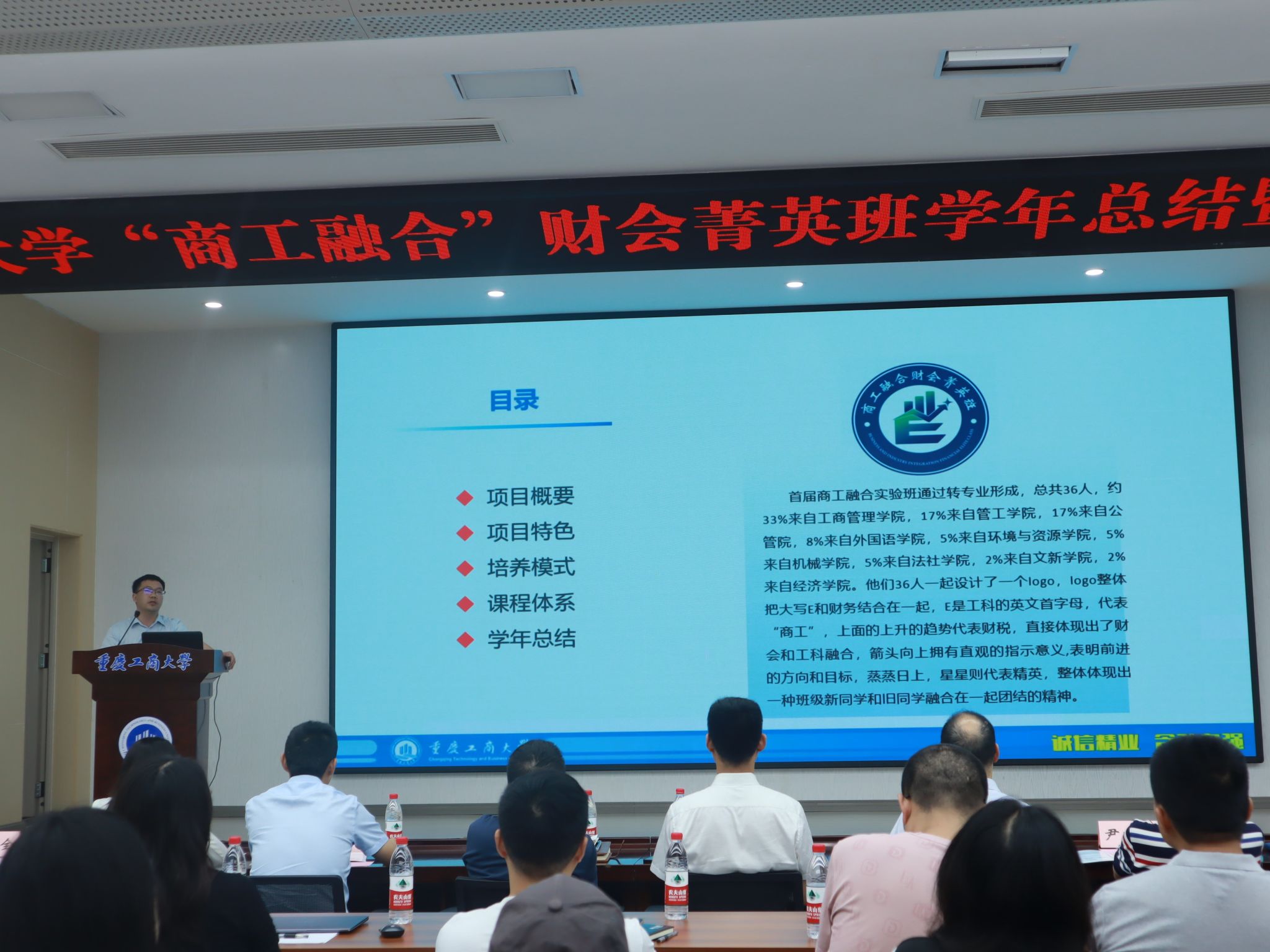 OK138太阳集团为落实学校“商工融合”人才培养改革工作部署,2023年跨专业筛选38位同学进入财务管理专业,单独组建“商工融合”财会菁英班,以“商工融合 智领未来”为理念,以“财会助推科技改变世界”作为指导思想,探索培养具有强国复兴使命感,拥有战略管理能力、卓越思维能力、产业技术服务能力、数智技术应用能力和财会专业服务能力的首席财务官。本次大会的举行即是学年总结,也是未来展望,为项目顺利运行注入了新的力量。