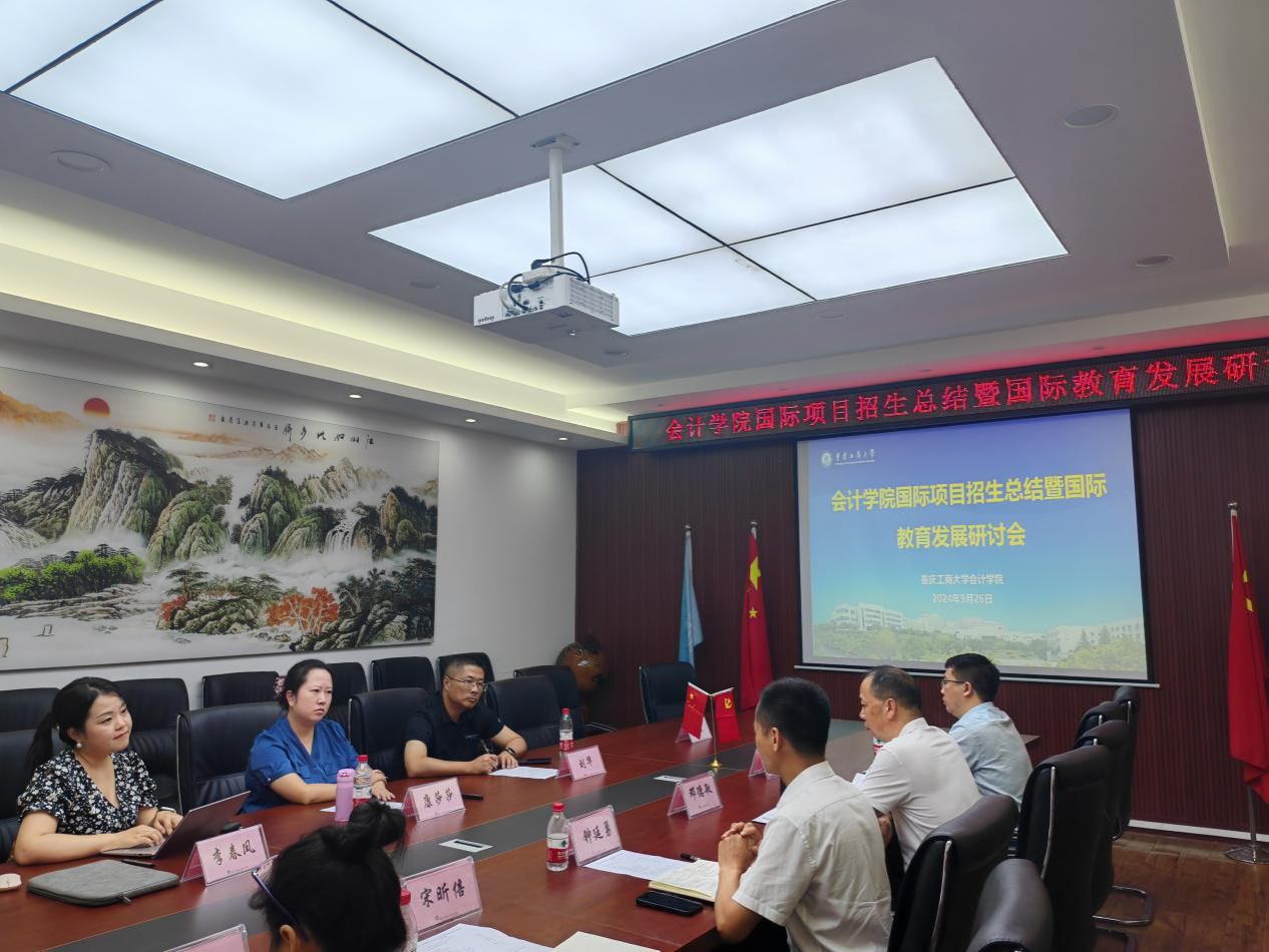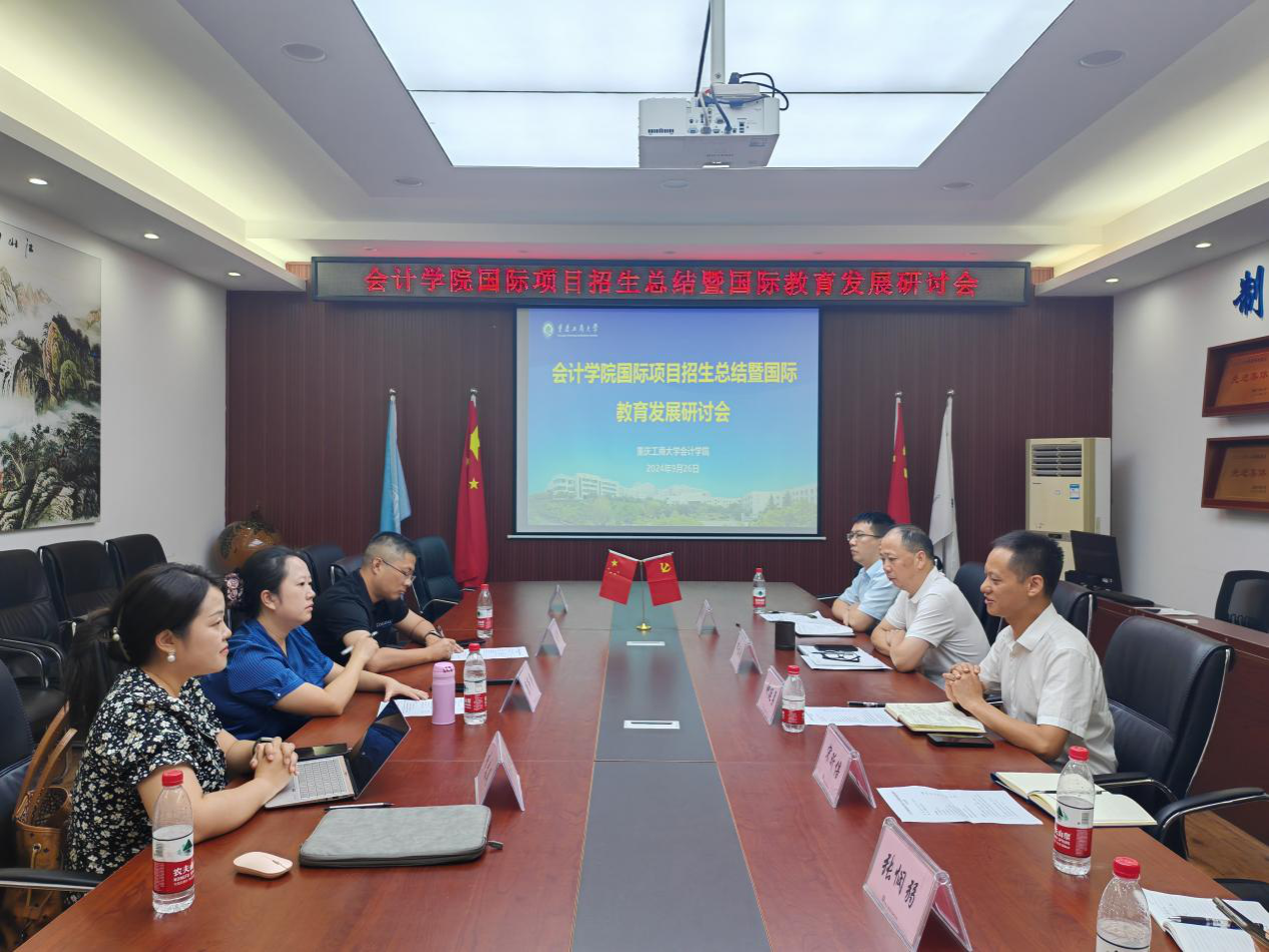2024年9月26日下午14:30,OK138太阳集团国际项目招生总结暨ok138cn太阳集团古天乐发展研讨会在重庆工商大学南岸校区明德楼2019会议室举行。重庆工商大学OK138太阳集团党委书记邓德敏、院长钟廷勇、副院长蒋水全、ok138cn太阳集团古天乐中心主任宋昕倍、ok138cn太阳集团古天乐中心秘书张悯弱,楷柏教育总裁助理兼高级项目总监刘华、高校事业部副总经理康莎莎女士、CIMA学术总监周洁、楷博高校事业部重庆地区负责人李春凤参加了会议。
