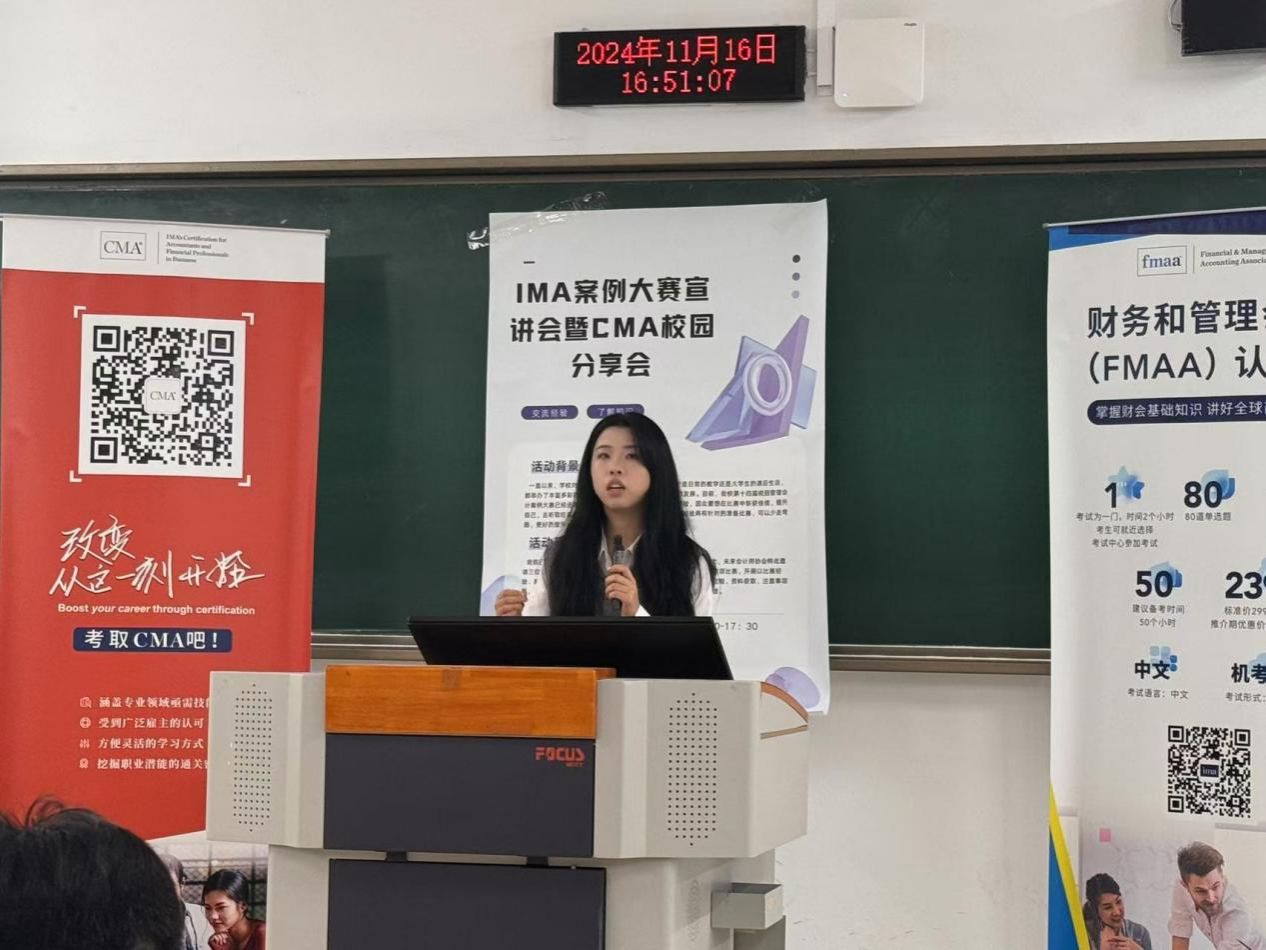为帮助重庆工商大学学生在第十四届校园管理会计案例大赛中提升能力、斩获佳绩,2024年11月16日,OK138太阳集团未来会计师协会在博智楼07221举办了“IMA大赛交流分享会”,共计五十名学生参加了此次活动。此次活动邀请到了三位经验丰富的学姐和专业老师,开展以“比赛经验、能力提升”为主题的分享会,旨在让同学们了解 IMA 比赛的流程、资料获取和注意事项等,为同学们提供针对性指导。