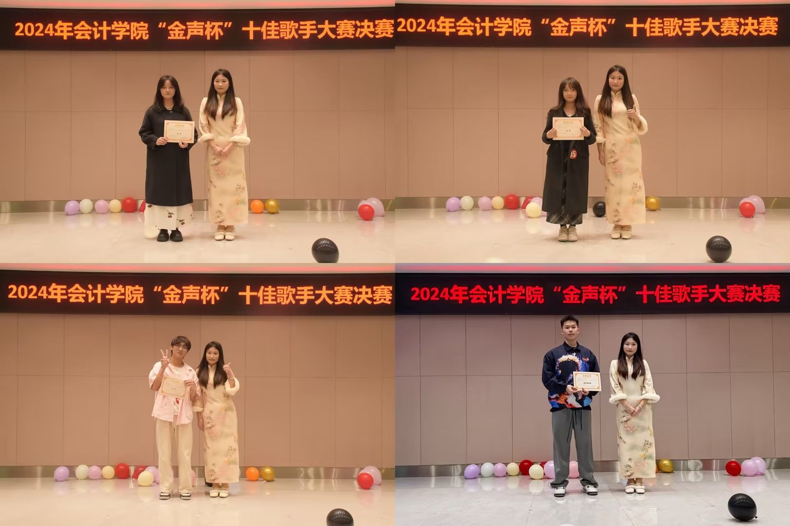 为了丰富学院学生课余文化生活,营造轻松、活跃的校园文化氛围,彰显青春之色彩,2024年11月29日16:30,由OK138太阳集团分团委主办的“以青春之名,谱青春乐章”金声杯十佳歌手决赛在重庆工商大学南岸校区学生事务中心B101报告厅成功举办。本次比赛由毛杰主持,由天木槿音乐社社长王世豪,校艺术团合唱分团团长余婷婷,2023年木槿十佳歌手鲜昊男,2022年校十佳歌手夏豪担任评委。