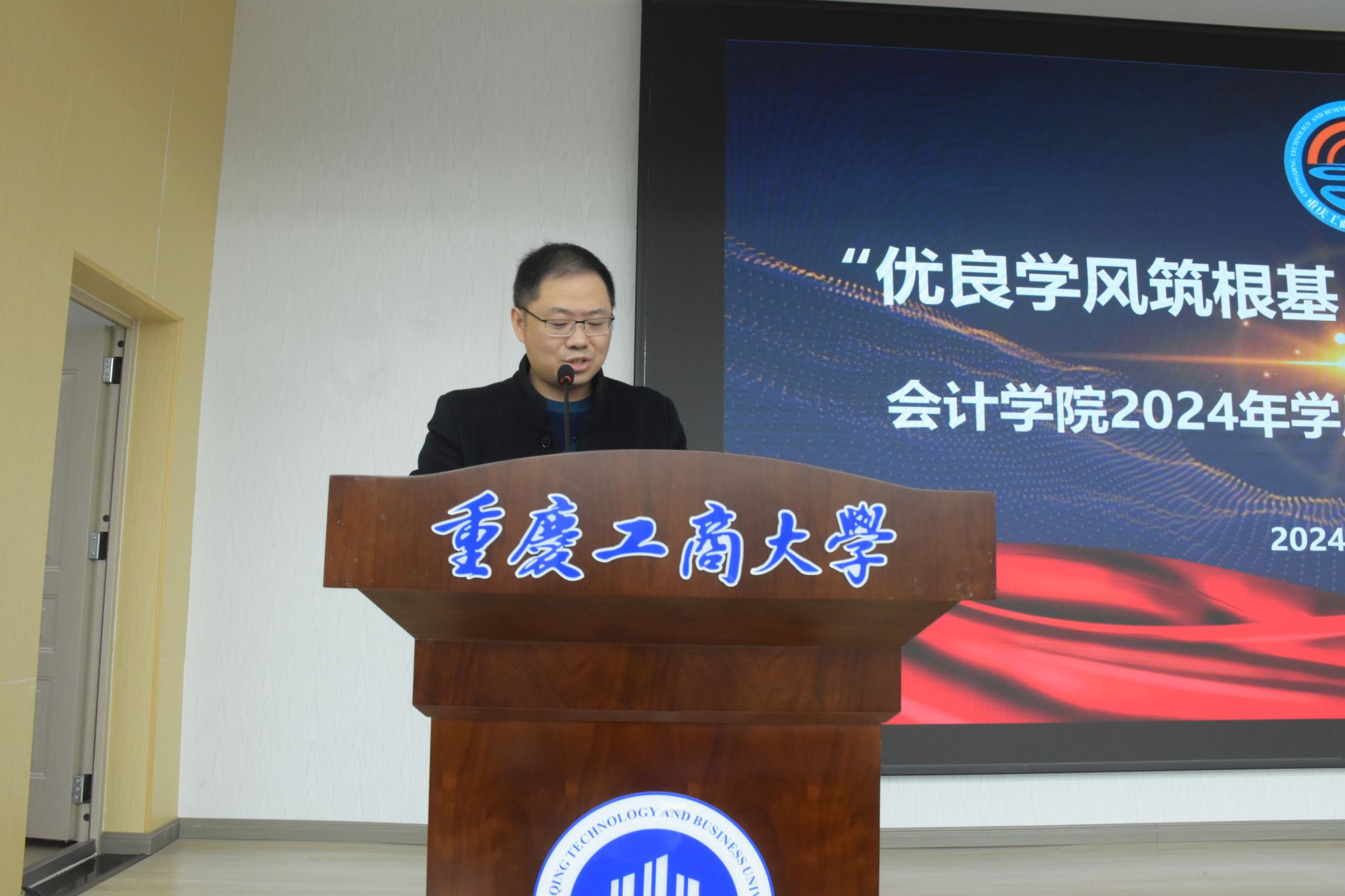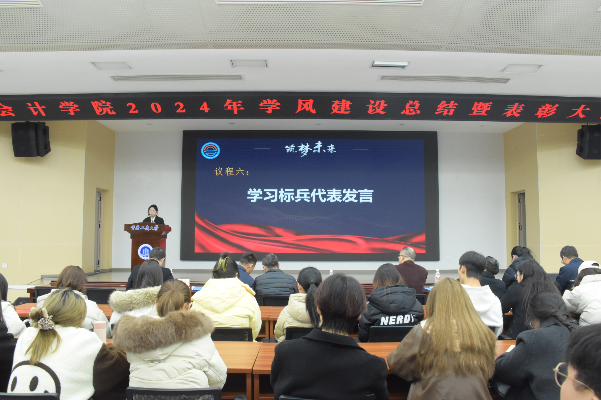 大会伊始,郝颖副书记对学院2024年学风建设工作做总结,她指出:学院秉承“勤学善思、求真笃行”的学风和“诚信精业、含弘自强”的院训,结合专业特点和学生实际,持续优化“导学、辅学、勤学、优学、督学、励学”六位一体学风建设体系,着力培养学院优良学风,形成了以活动促学风、以服务护学风、以榜样树学风、以实践创学风、以管理强学风、以环境育学风的学风建设工作新格局,全力培养德智体美劳全面发展的卓越创新会计人才。同时,她还从创设“导学—引领”体系、搭建“辅学—帮扶”体系、培育“勤学—示范”体系、打造“优学—实践”体系、构建“督学—养成”体系、布局“励学—激发”体系做了学院2024年学风建设的工作总结,并对学院未来学风建设工作做出展望。