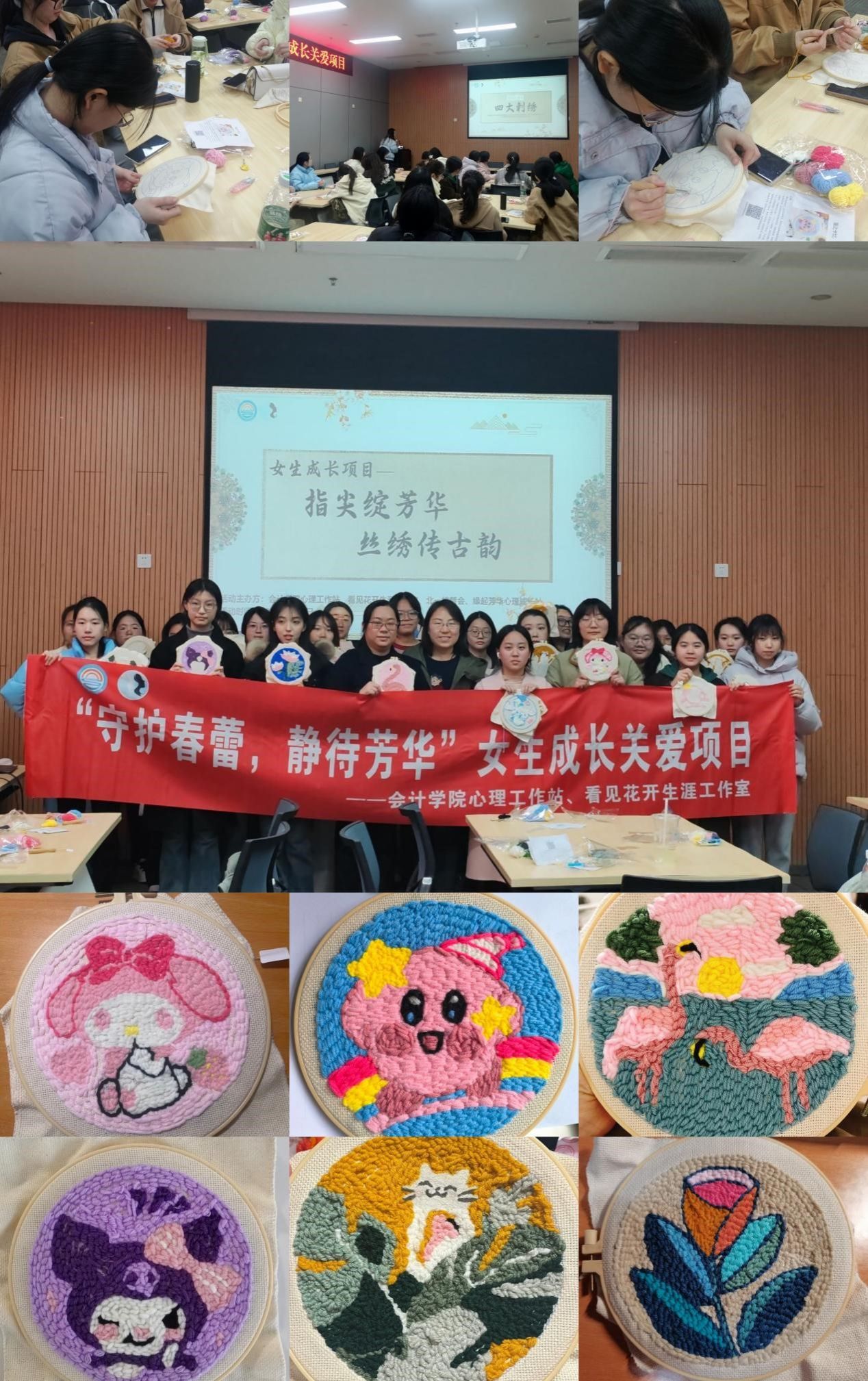 “指尖绽芳华,丝绣传古韵”不仅是一场精彩纷呈的活动,更是一次心灵的洗礼与成长的见证。愿女生们在未来的日子里,如戳戳绣作品般绽放绚丽光彩,勇敢追梦,收获满满的幸福与喜悦。同时,我们也期待更多这样的活动在校园内举办,让传统文化在校园中生根发芽,绽放出更加璀璨的光芒。