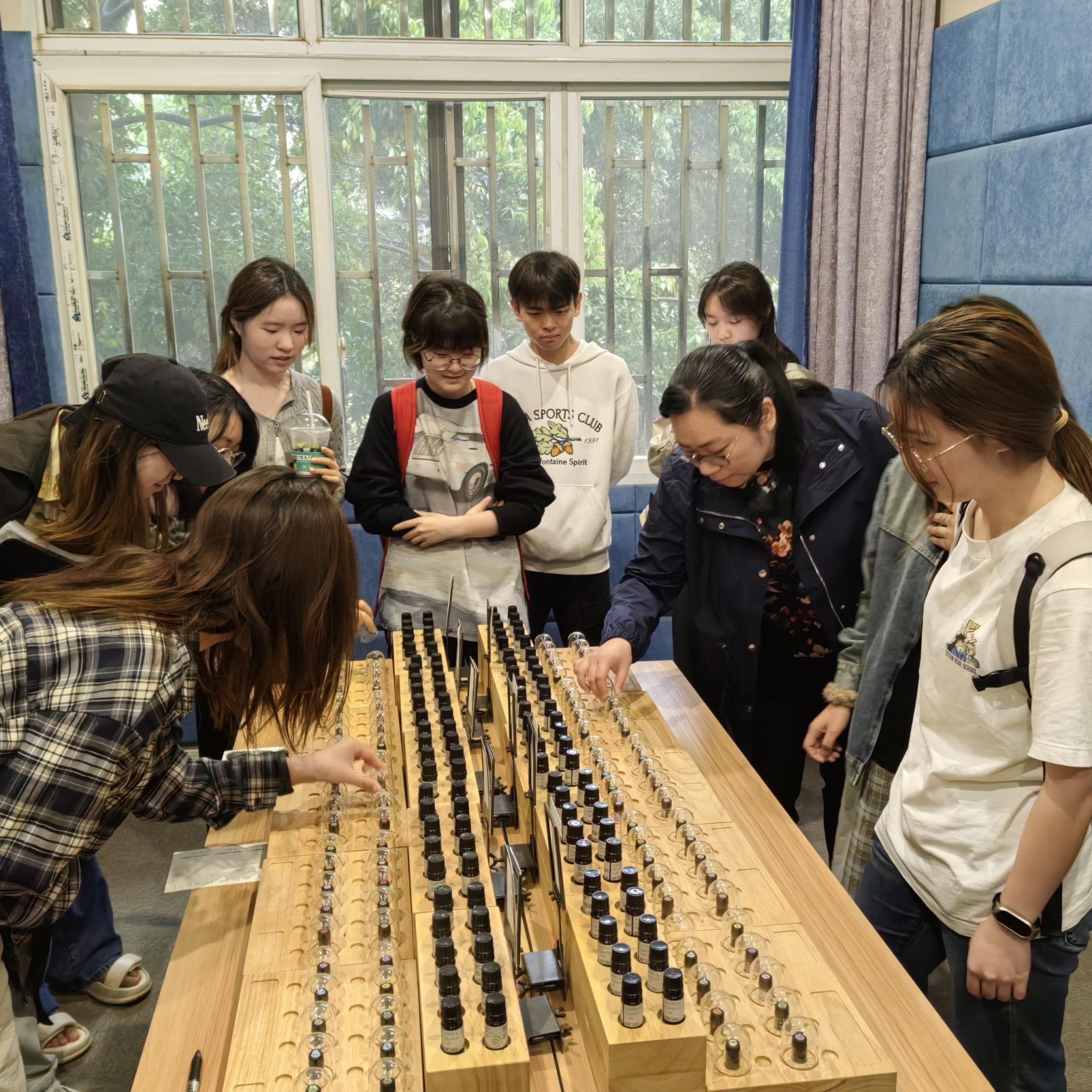 体验环节结束后,同学们移步至心理中心的各个功能区,开启了一场心灵的深度探索之旅。个体咨询室里,温馨私密的环境为学生提供了倾诉心声、释放压力的安全港湾;团体辅导室中,同学们在互动交流中增进彼此理解,凝聚团队力量;沙盘治疗室里,沙盘与玩具成为心灵的画笔,学生们通过自由摆放,展现出内心深处的情感世界;减压放松舱内,轻柔的音乐与舒缓的环境,让学生们仿佛置身于宁静的世外桃源,身心得到深度放松。在香薰室,同学们被各种天然精油的芬芳所吸引,大家纷纷驻足,好奇地嗅闻、挑选,沉浸在这独特的感官体验中。一位同学深吸一口气,微笑着说:“这些气味仿佛有一种神奇的魔力,让我原本紧绷的神经一下子就放松了下来,感觉心灵都得到了净化。”