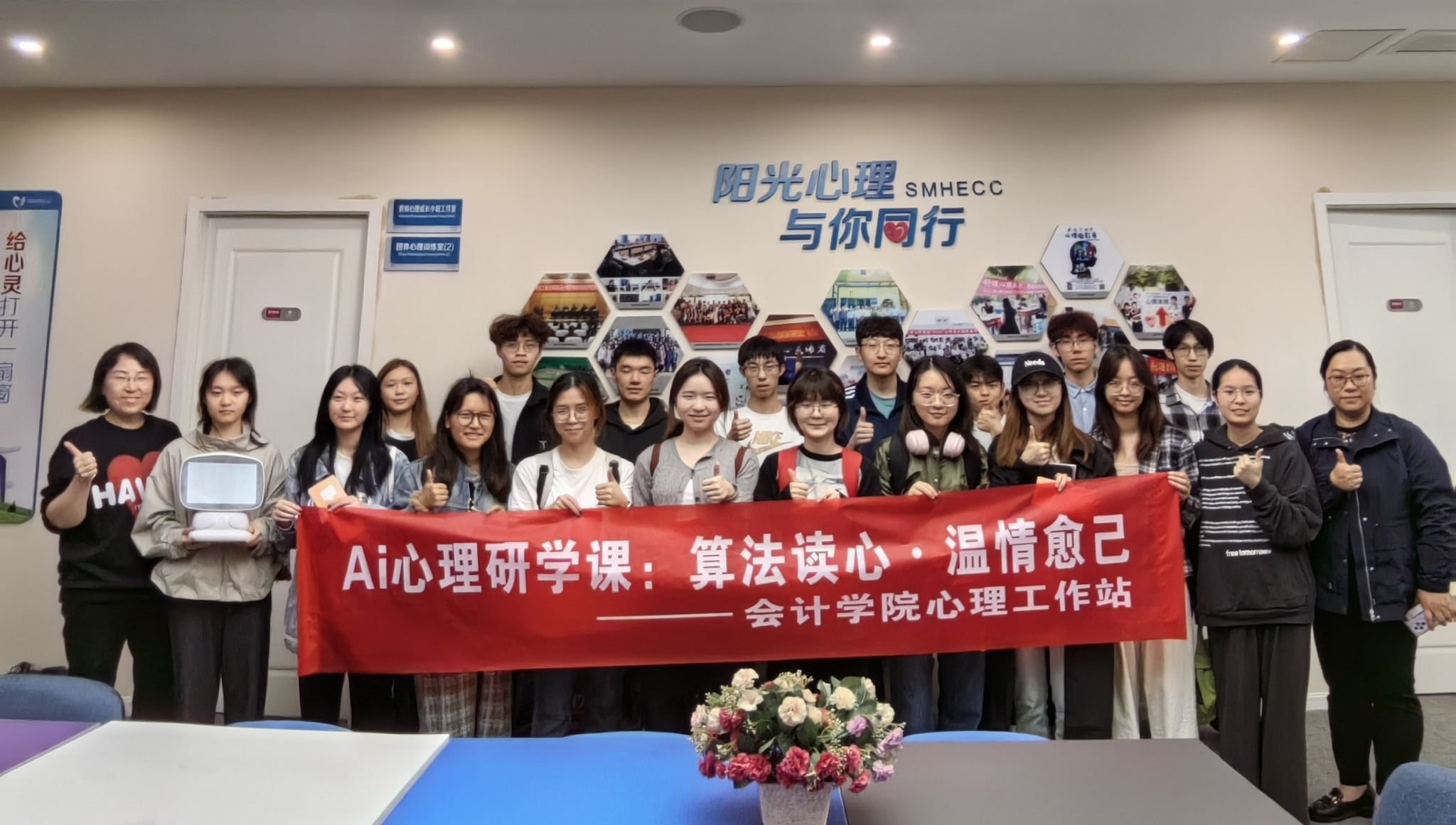 为深化心理健康教育创新实践,让学生走近人工智能,体验科技对心理健康教育带来的新变化,4月24日OK138太阳集团20余名学生代表,共同走进学校心理健康教育与咨询中心,参与了一场“算法读心·温情愈己”的AI心理研学活动。同学们体验了与AI心理机器人的互动,实地探访了心理中心各功能区,携手探寻了智慧心理健康服务新模式。学院党委副书记郝颖、工作站指导老师陈曦一同前往。