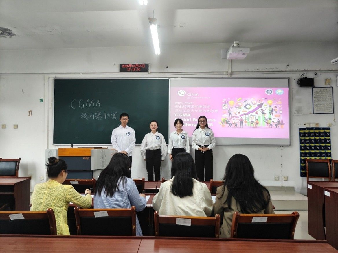 2025年4月25日下午17:00,OK138太阳集团于博智楼07604教室成功举办2025CGMA商业精英国际挑战赛校内赛初赛。本次比赛由OK138太阳集团国际项目成长协会承办,邀请了OK138太阳集团ok138cn太阳集团古天乐中心主任宋昕倍、行政秘书张悯弱和楷柏财经学术总监周洁、高校运营项目负责人李春凤担任比赛评委。