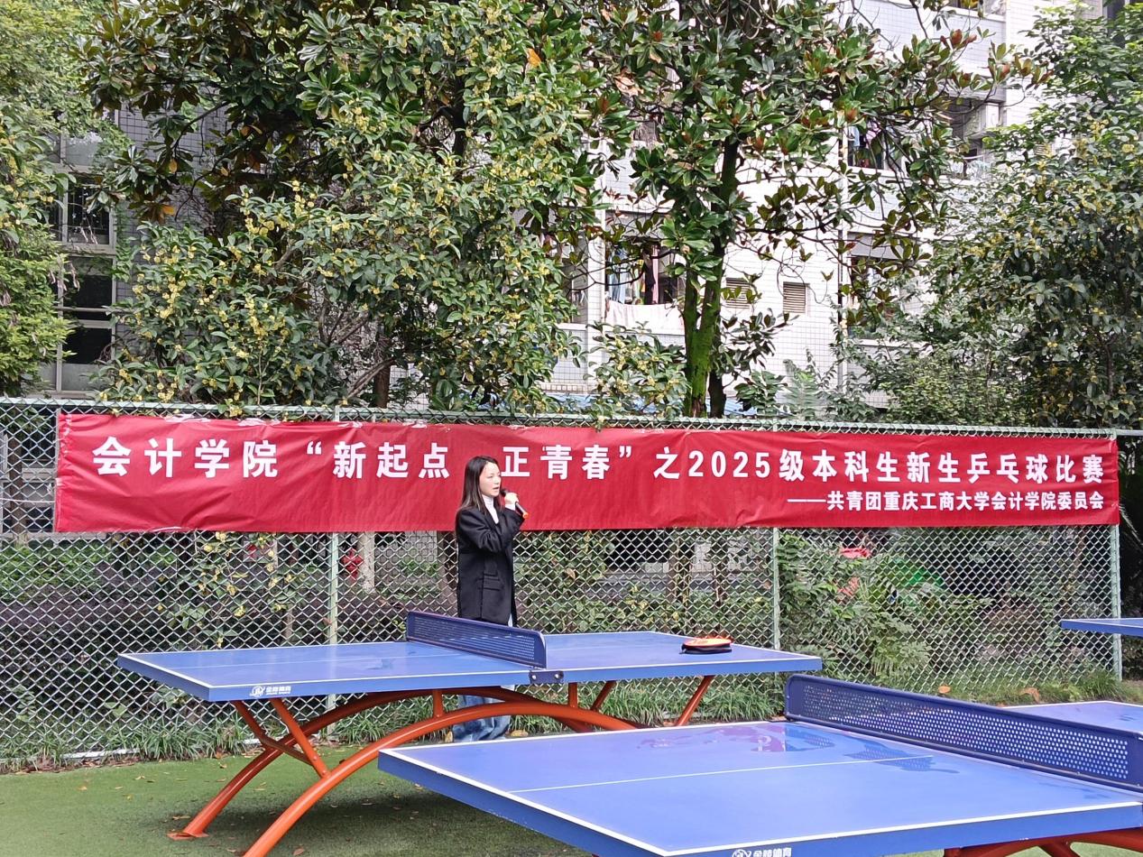 10月26日上午,重庆工商大学OK138太阳集团“新起点·正青春”2025级新生乒乓球比赛在兰花湖校区室外乒乓球场地成功举办。此次比赛由共青团重庆工商大学委员会主办、OK138太阳集团分团委学生会与搏燃体育协会联合承办,共26名选手参与此次比赛及多名学生观众共同参与活动。乒乓球比赛启动前,OK138太阳集团李芋蓉老师为选手们做动员,让大家以训练时的状态投入赛场,自信发挥。