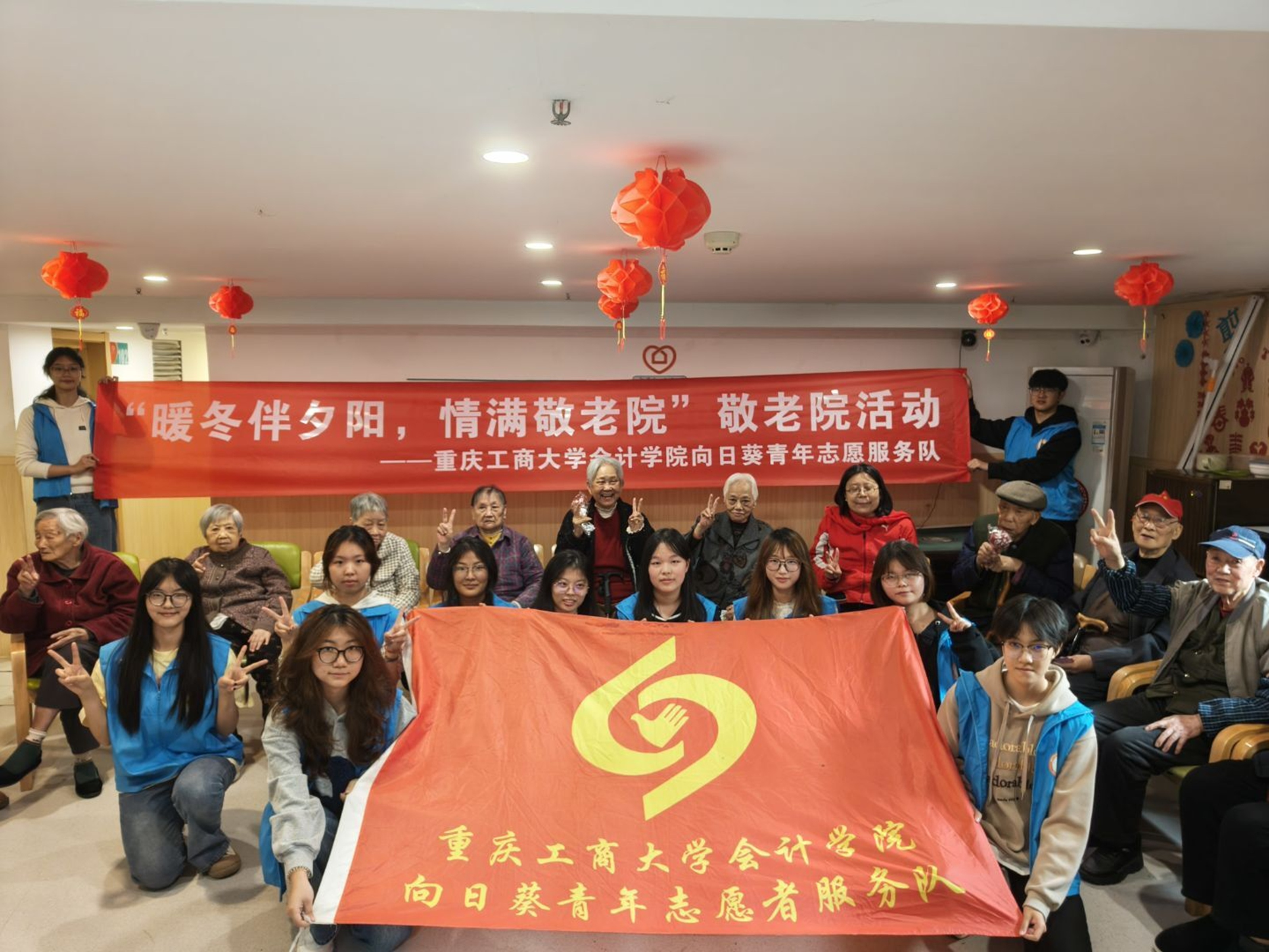 为弘扬中华民族尊老敬老的传统美德,践行新时代青年的社会责任,2025年11月2日,重庆工商大学OK138太阳集团向日葵青年志愿者服务队走进重庆市渝中区曾家岩敬老院开展“暖冬伴夕阳,情满敬老院”敬老院活动,用真心互动驱散寒意,用耐心倾听慰藉心灵,让敬老院内暖意涌动、温情绵长。