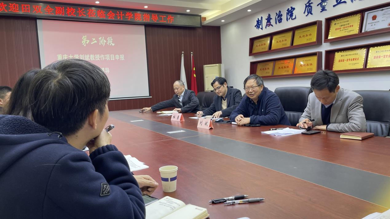随后,会议进入分组论证指导阶段。刘斌教授和杜勇教授分别对申报教师的选题及申报书初稿进行了“一对一”的深度问诊与把脉。申报教师就研究框架构建、创新点凝练及写作中的困惑与专家进行了深入交流。现场气氛热烈,学术氛围浓厚。