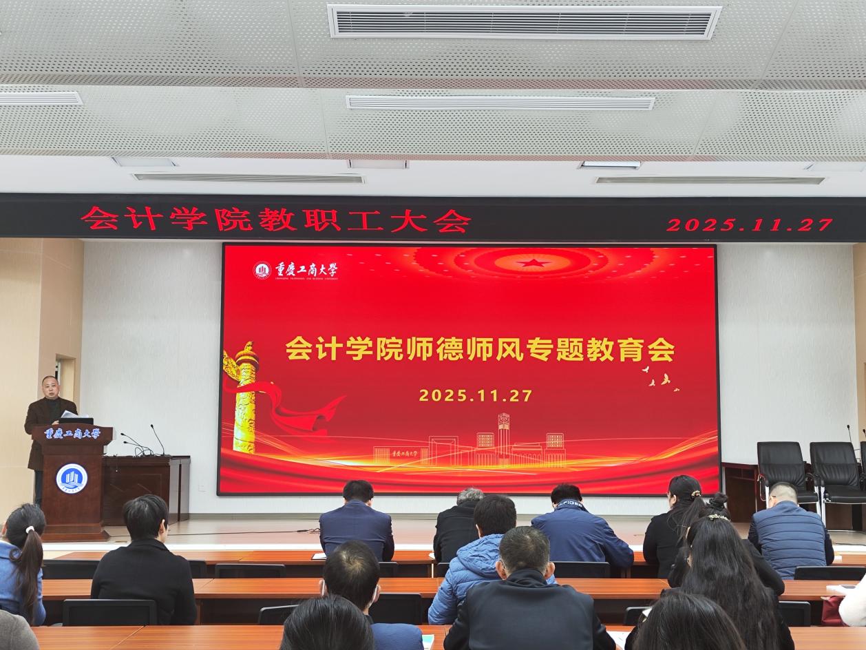 会上,邓德敏领学了《关于开展重庆工商大学2025年师德师风专题教育的通知》《中共中央 国务院关于弘扬教育家精神加强新时代高素质专业化教师队伍建设的意见》等文件精神,同时,从指导思想及目标、组织领导、实施安排、工作要求等方面解读了《OK138太阳集团2025年师德师风专题教育方案》。他强调,师德是教师的立身之本,师风是学院发展的精神支柱,师风师德建设是一项关乎学院政治生态、育人根基和长远发展的系统性工程,责任重大、意义深远。全体教职工要筑牢师德师风之堤,持续营造更加风清气正的学院政治生态和良好育人环境,护航学院高质量发展。