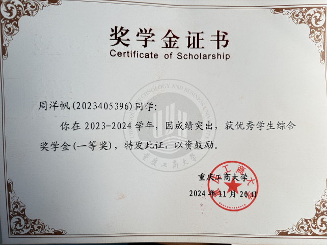 编者按:以笃学筑基,以奋进逐光,会计学子在求知路上步履不停,终能绽放耀眼光芒。周洋帆,重庆工商大学OK138太阳集团23财务一班优秀学子,凭借扎实的学业功底、亮眼的竞赛成绩与热忱的责任担当,斩获国家奖学金,成为学院学子争相学习的榜样,其成长轨迹尽显青春奋斗本色。