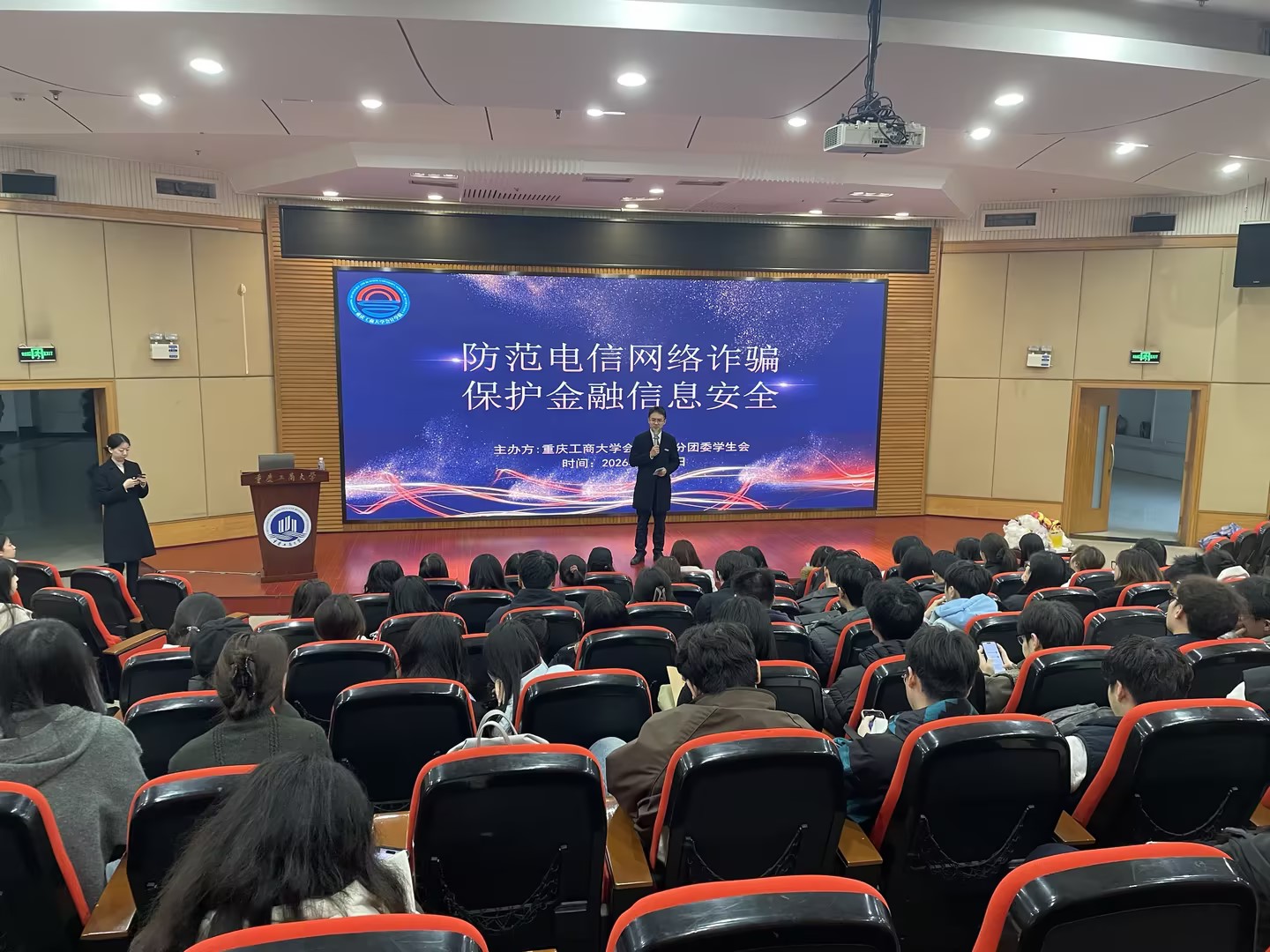 为进一步提升大学生的金融风险防范意识,筑牢校园安全防线,3月19日下午,中国工商银行重庆自由贸易试验区分行“反诈进校园”系列宣传活动走进重庆工商大学OK138太阳集团。本次活动旨在将金融安全知识送入校园,帮助同学们认清诈骗套路,守护个人财产与信用安全。