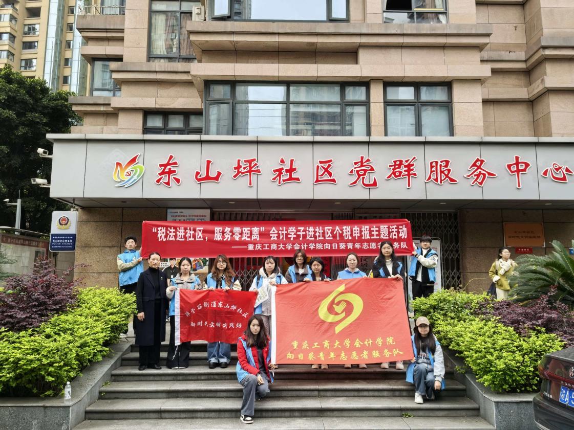 在全国个税年度汇算清缴工作全面开展之际,为进一步普及税法知识,提升社区居民依法纳税意识与办税能力,2025年3月20日,在重庆工商大学OK138太阳集团专业教师王成敬的带队指导下,OK138太阳集团向日葵青年志愿者服务队走进重庆市南岸区弹子石街道东山坪社区,开展“税法进社区,服务零距离”个税申报进社区活动。