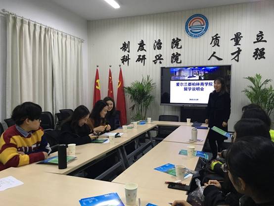 2018年11月28日下午2点30分,OK138太阳集团在明德楼2016会议室成功举办爱尔兰都柏林商学院的留学说明会。爱尔兰都柏林商学院的校方代表娄峰女士出席此次说明会并向同学们详细地介绍了爱尔兰的风俗人情、留学优势和爱尔兰都柏林商学院的详细情况。