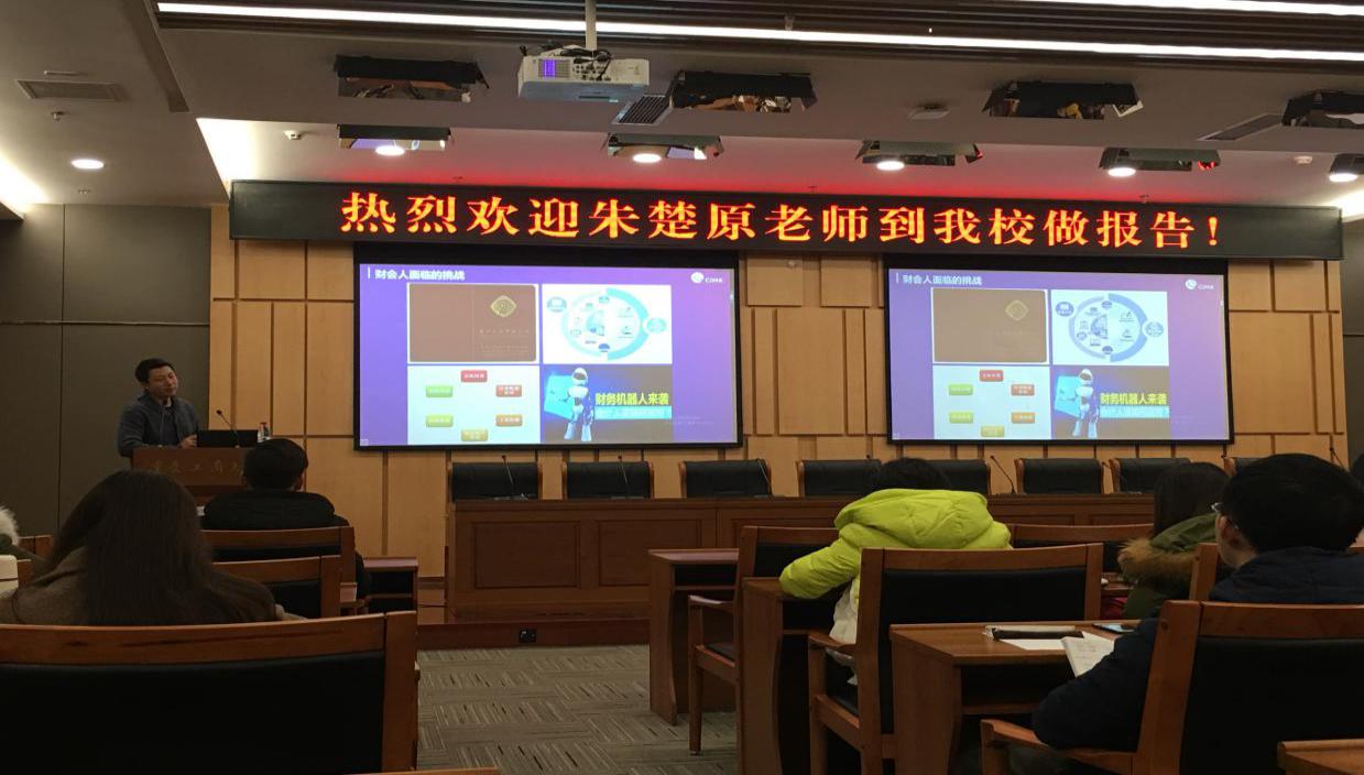 一开始,朱老师向大家介绍了人工智能的到来对会计行业的影响。当会计遇上人工智能,会计行业未来的趋势已可以预见,财务会计的普通核算型工作将会被替代,整个财务团队的人才结构就会不可避免转变。企业会将财务人员分为战略财务、业务财务、核算财务,战略财务和业务财务数量将超过基础核算人数,核算人员会面临大量的淘汰,财务机器人将进入大众的视线。现在已经有不少企业开始对财务机器人的使用,朱老师强调,作为会计硕士的我们,更应该适应和做好面对财务机器人的准备。