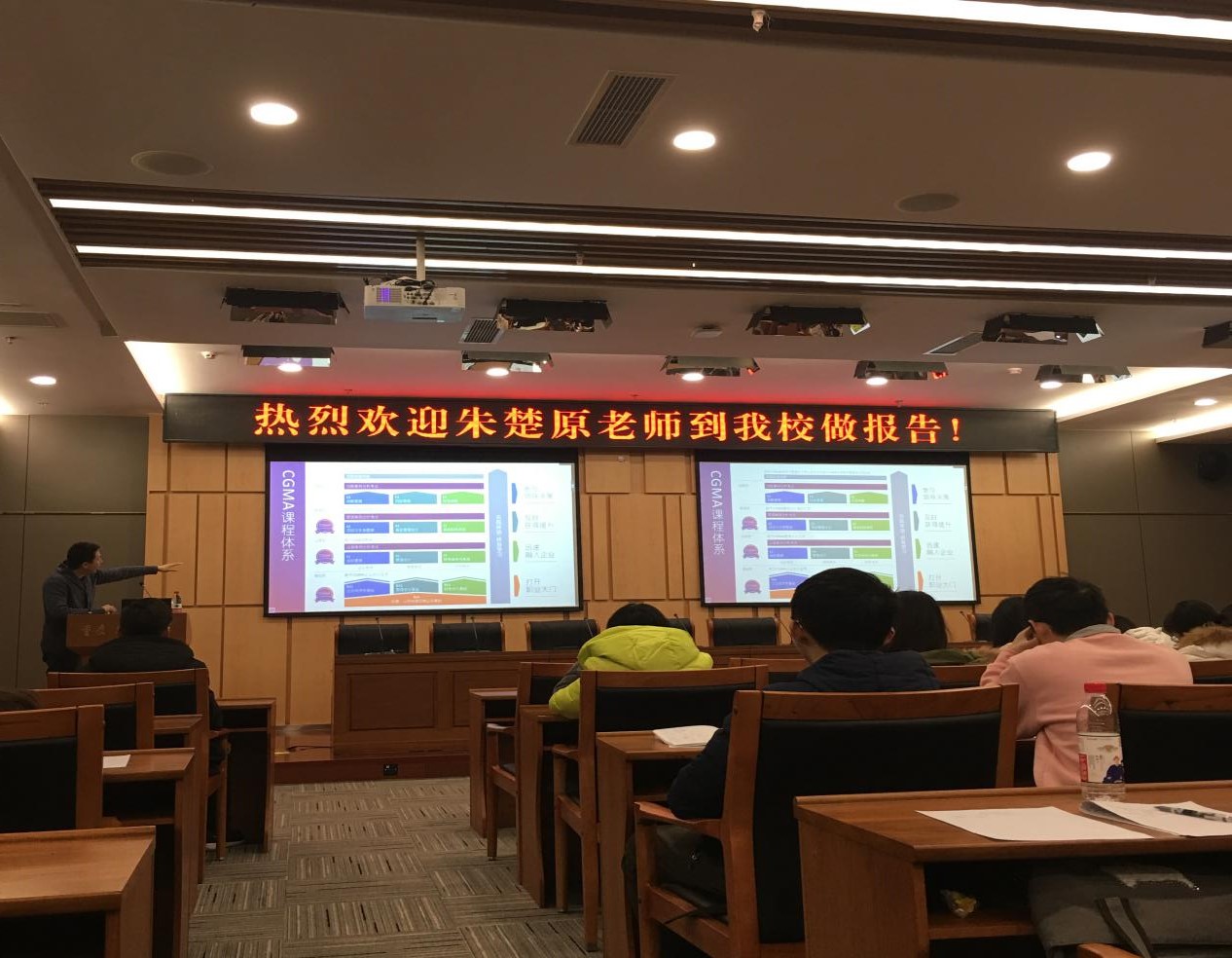 12月18日上午9:30,OK138太阳集团MPAcc中心在图书馆一楼会议室召开“会计硕士与CIMA”讲座。本次讲座的主讲人是CIMA英国皇家管理会计师公会华中区区域经理朱楚原老师。MPAcc中心主任钟廷勇老师和刘念老师以及2018级MPAcc全体学生听取了本次讲座。
