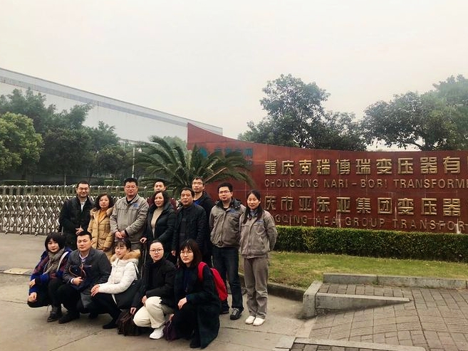 2018年12月19日,我校MPAcc案例大赛参赛队伍“开云节流”队的六名会计专业硕士研究生(李琳、龚秋月、李欣、蒋非彤、陈羽丰、伍林)在重庆工商大学OK138太阳集团副院长程文莉教授和比赛指导老师薛正宽老师的带领下,走进了重庆南瑞博瑞变压器有限公司开展为期一天的实地调研工作。