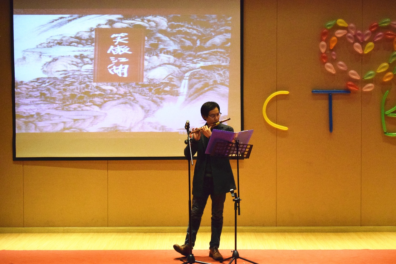 上台表演的不仅有能歌善舞的同学们,MPAcc中心主任钟廷勇博士也给大家带来了惊喜,笛子曲《沧海一声笑》、《女儿情》让全场观众耳目一新,掌声连连。