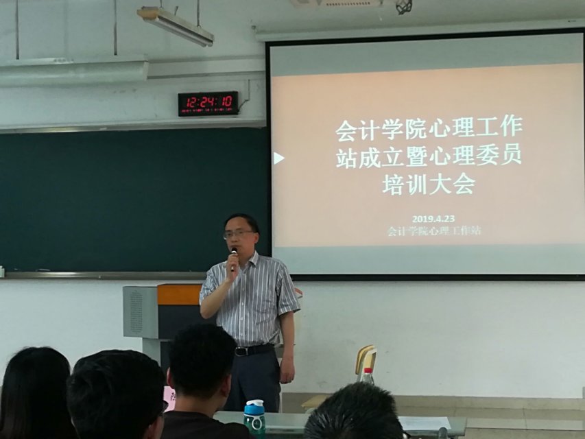 大会由陈曦老师主持。会议伊始,尹建平副书记向大会致辞,他希望心理工作站在举办丰富且有意义的各项心理活动的同时,能够不断完善、改进工作机制,发挥其应有价值。同时,尹书记对各位心理委员提出了希望,他强调心理委员需要认真履行工作职责,加强与室长的沟通,保持信息畅通,起到上传下达的联通作用。随后,心理工作站站长帅娟同学向大会介绍了心理工作站的主要职责及我院拟推行的《心理委员管理考核条例》,让心理委员做到工作制度心中有数。最后胡佳怡老师向全体心理委员开展了心理专业知识培训。她从“强迫症”、“抑郁症”等的识别、干预、注意事项等方面向同学们作了详细讲述,让心理委员进一步了解了相关知识。同时,胡老师也介绍了我校心理咨询室的情况及预约心理咨询的注意事项,希望心理委员指导同学们在有需要的时候及时预约咨询。