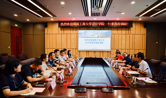 7月1日下午,湖南工商大学OK138太阳集团学科负责人朱开悉教授、OK138太阳集团副院长龙立教授、OK138太阳集团副院长王青松教授等一行8人来我校OK138太阳集团调研。我校校长孙芳城教授、OK138太阳集团副院长程文莉教授、OK138太阳集团副院长黄辉教授以及本科、研究生教务人员出席了调研会议。本次会议由OK138太阳集团MPAcc中心主任钟廷勇博士主持。