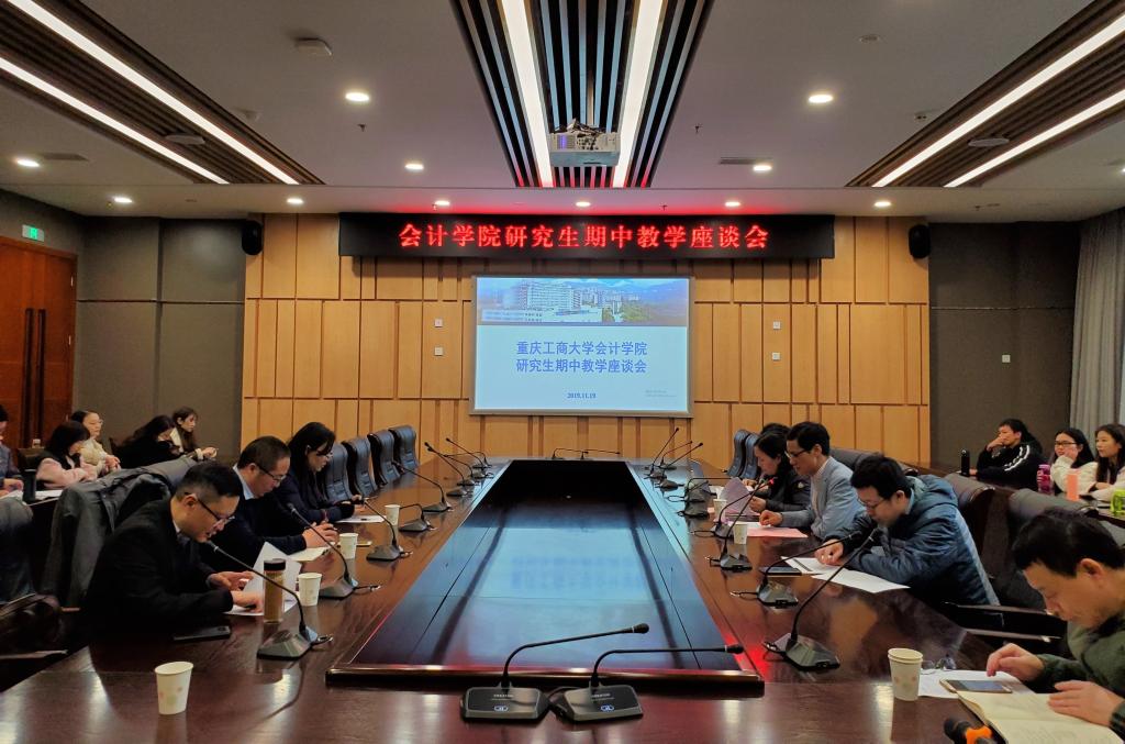 2019年11月19日下午,重庆工商大学OK138太阳集团研究生期中教学座谈会在图书馆第五会议室召开。OK138太阳集团副院长程文莉教授、专任教师代表、研究生管理人员及各班研究生代表参加了本次座谈会。