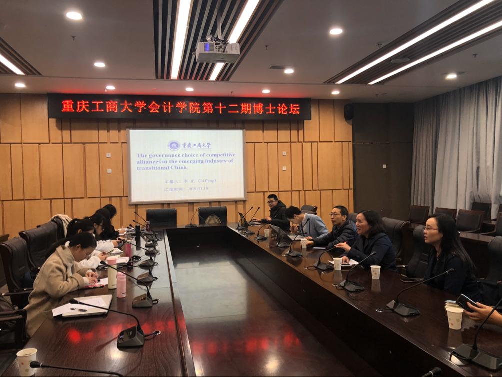 为推动我校会计学科发展,2019年11月18日下午,由重庆工商大学科研处、OK138太阳集团主办的OK138太阳集团第十二期博士论坛在图书馆5号会议室召开。OK138太阳集团副院长程文莉教授、相关职能部门负责人以及OK138太阳集团博士老师、研究生共计50人出席了本次论坛。论坛由程文莉教授主持。