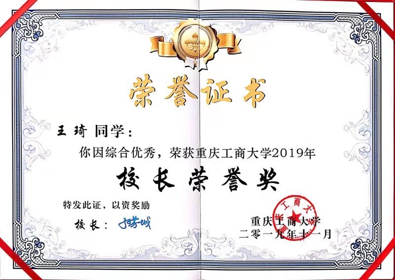 “校长荣誉奖”每年评选一次,该殊荣是校内学生的最高荣誉。经过全校海选、各学院积极推荐申报、工作组审核查验材料、遴选评委成员、审阅投票、考察谈话、答辩会、公示、校长办公会审定等程序评选出20位入围者。在该次评选活动中,OK138太阳集团MPAcc教育中心高度重视并积极组织同学参与申报,最终2017级MPAcc研究生王琦从20个申报者中琦脱颖而出,荣获2019年校长荣誉奖,并接受孙芳城校长亲自颁发的奖杯、证书和奖金。这是MPAcc自2015年开办以来首次荣获该奖项。