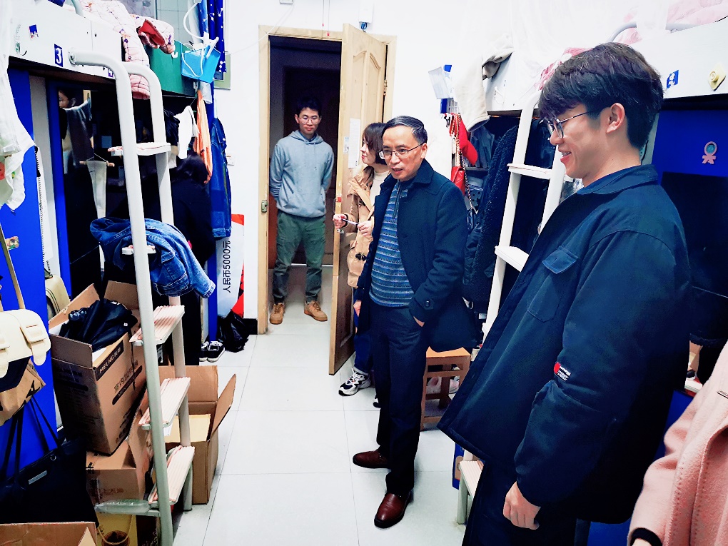 尹书记带领检查小组深入学生宿舍,逐一对学生是否留寝进行排查,认真了解宿舍未归学生的基本情况、未归原因并进行记录。工作小组仔细检查寝室安全隐患,着重检查是否有“私拉乱接电线”、“违规使用大功率电器”、“人离电未断”等问题,并对学生近期的生活学习情况进行了解。最后,尹书记叮嘱同学们注意在校和外出时的安全。经过三个多小时的全面检查,三夜两节研究生查寝圆满结束。