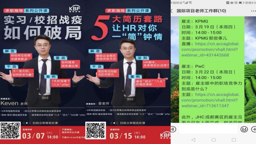 疫情特殊时期,除了保障国际项目的在线正常教学外,ACCA/CIMA国际项目中心还联合楷博财经为同学们提供完善的学生服务,坚持全员到岗在线为同学们答疑解惑。关注疫情之下最新的政策变化信息,让同学们第一时间了解最新考试政策,及时调整自己的考试计划;针对线上教学提供一系列教辅支持,线上教学平台使用指南,通知同学们按时上课;引导同学们关注疫情影响下的 “春招”等就业招聘信息,开展“求职规划”“ACCA就业力大比拼”“CIMA商业精英挑战赛”等线上讲座,以帮助想要求职或实习的同学做好准备。