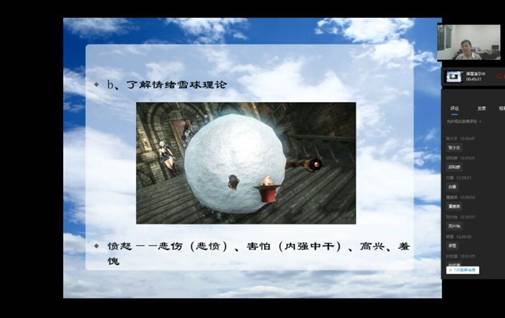 本次讲座邀请到我校心理健康教育与咨询中心的负责人胡佳怡老师在线直播。胡老师从什么是情绪开始,让同学们知道了情绪的来源,并且详细讲解了“情绪雪球理论”,告诉大家要去厘清我们的情绪,要认识到情绪背后的东西。胡老师为同学们讲解了正确处理情绪方法——合理情绪疗法,它的核心是去掉非理性的、不合理的信念,从而改变我们的行为和情绪。胡老师还教给同学们一些日常调节情绪的有效方法,大家收获满满。