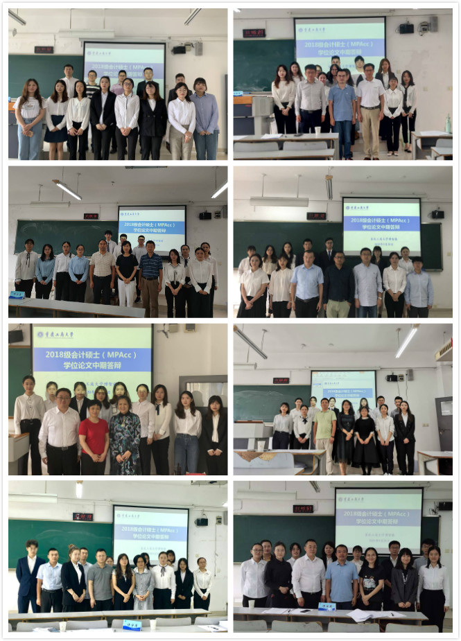 最后,经过一天紧张忙碌的中期考核,100名MPAcc研究生顺利完成了答辩任务,并对答辩专家表达了感谢,会后进行了小组合影留念。