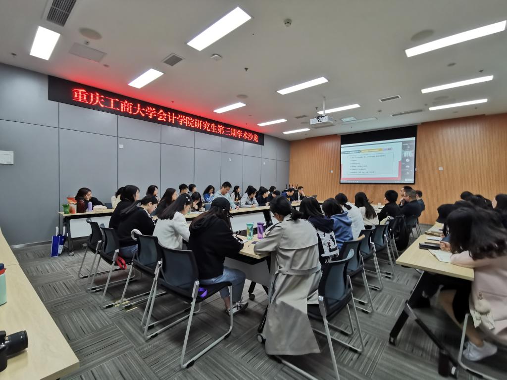 第二阶段是论文汇报,由钟廷勇院长主持。首先,来自18级会计学硕何玲和19级会计学硕黄烈携同学分别作了《产业政策调整与企业私募资金投向变更》和《异质结构投资者投资组合与股价崩盘风险》的论文汇报。随后,徐辉博士、何帆博士以及胡浩志编审分别对两位同学的报告进行了点评以及建议,重点强调了选题的现实意义和创新,注意分析方法的可行性等。