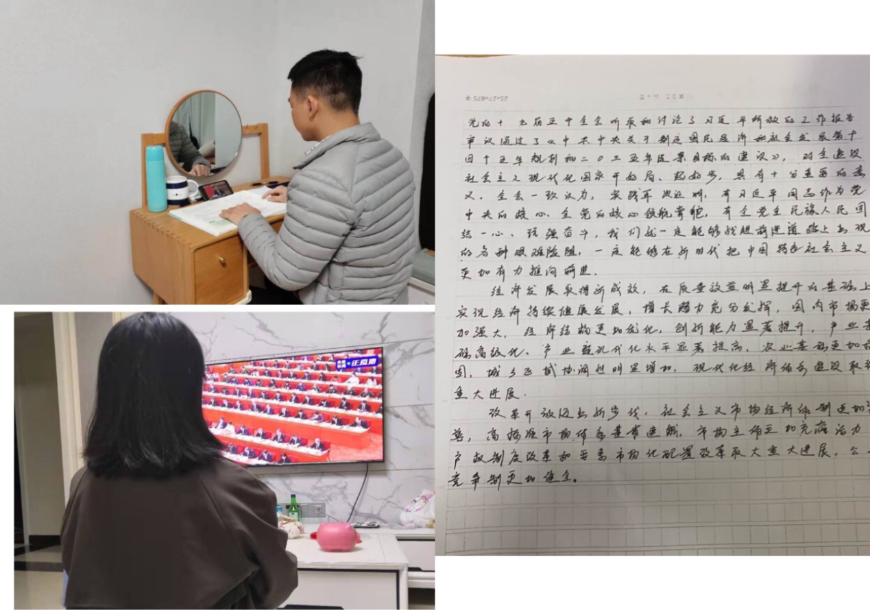 解放思维,方法多样学深悟透。针对正在实习而不能现场参与讨论学习的研三同学,党支部运用分散学习的方式,确保让每一位同志充分参与学习,增强对党的十九届五中全会精神的理解把握。部分实习的同志们充分利用电视、报刊、网络等载体跟进了解相关信息,观看相关视频,阅读关于全会精神的评论员文章,时刻关注最新报道,并撰写心得感悟。通过多种形式的配合学习,引导学生党员关心国家大事,对全会精神做到学深悟透、融会贯通,以全会精神武装头脑、指导学习、推动工作,自觉增强责任感和使命感。
