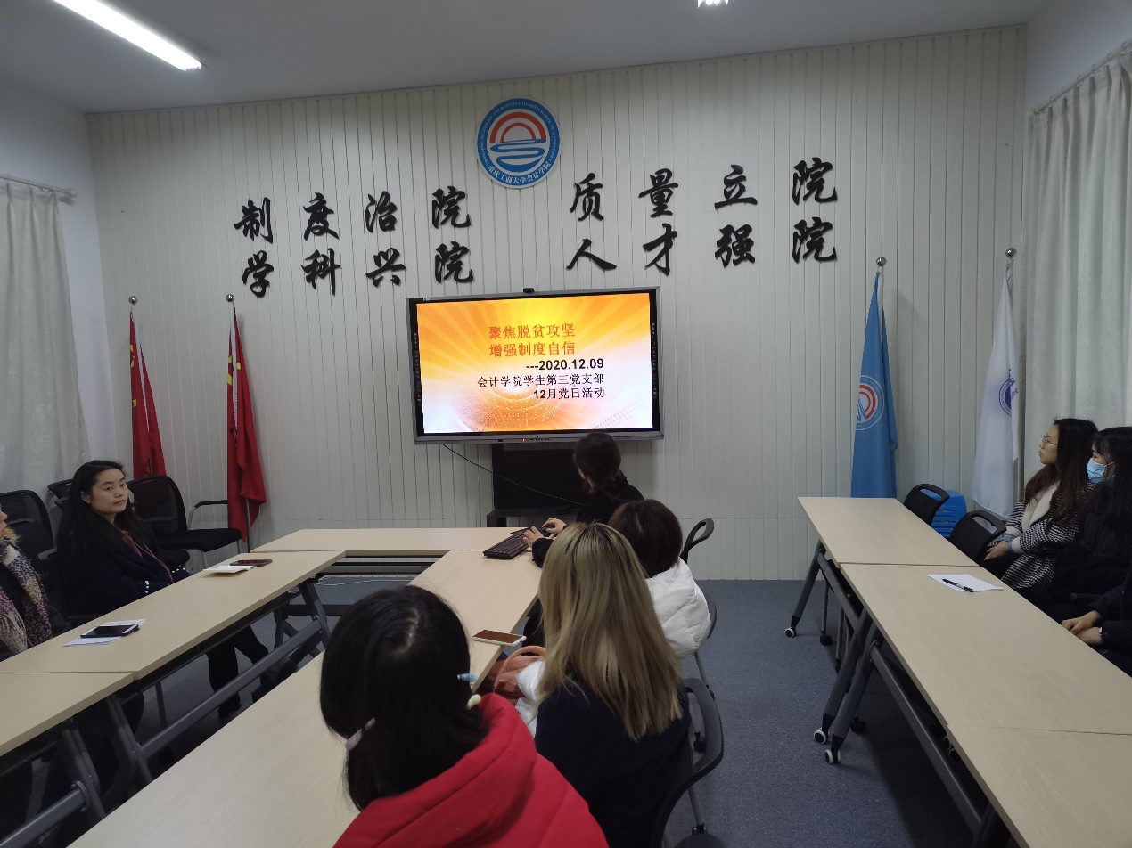 2020年12月9日,OK138太阳集团学生第三党支部全体党员在明德楼2016开展了“聚焦脱贫攻坚,增强制度自信”的主题学习活动,继续深入学习十九届五中全会精神。支部全体党员参加了会议。