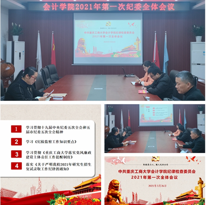 本次会议的内容包括学习贯彻十九届中央纪委五次全会和五届市纪委五次全会精神、学习《纪检监察工作知识要点》、学习贯彻《重庆工商大学落实党风廉政建设主体责任工作提醒制度》、落实《关于严明我校2021年研究生招生复试录取工作纪律的通知》。