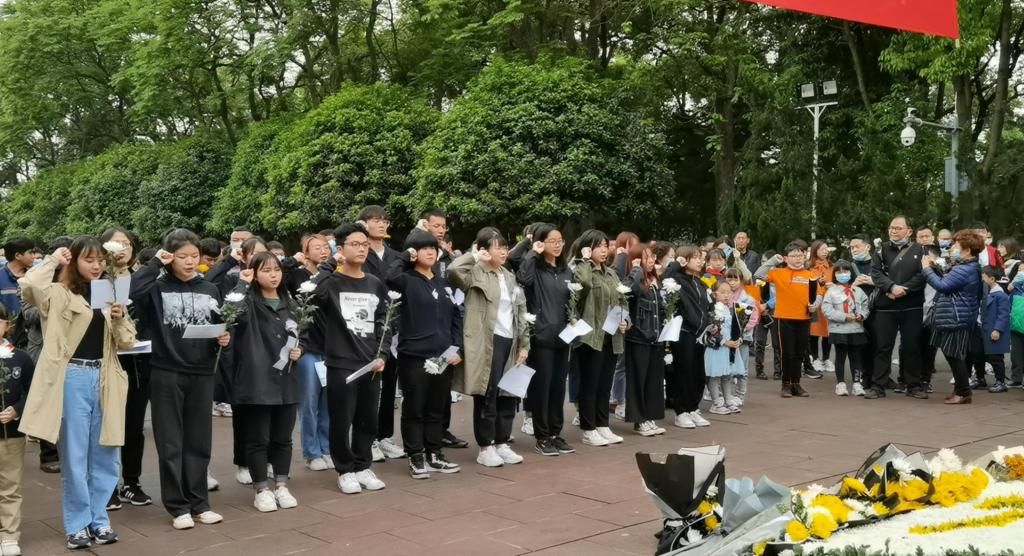 4月4日上午8:20,南岸与江北校区的志愿者们同时出发并于9:30准时到达歌乐山烈士墓园。上午10:30,活动正式开始,志愿者们身着素衣,手持白菊,现场气氛庄严肃穆。首先由两名志愿者向英雄烈士敬献花圈,并由志愿者代表致辞,致辞中说到“思念无声,热泪迎之!这盛世如你所愿,这盛世里,有你有我。今日中国,请放心,请安息!”深切地表达出了在场志愿者的心声。随后,全体志愿者肃立默哀一分钟,并在主持人的带领下庄严宣誓:“我将永远牢记革命烈士的教导,争当热爱祖国、理想远大的好青年”。随着志愿者们向烈士献鲜花仪式的结束,此次扫墓活动圆满落幕。
