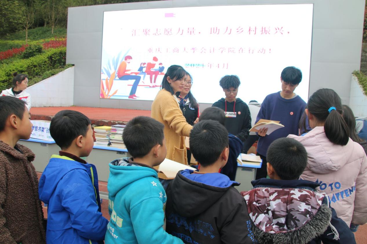 通过前期广泛宣传,活动期间参与募捐的同学超过500余名,募集各类书籍、学习用品近 200 公斤,其中书籍约 250 本、笔记本约 500 本、其他各类学习用品约 30 公斤,极大地展现了工商学子对山区儿童的关心,对乡村教育的支持。4月22~23日,学院4名学生代表带着承载着重庆工商大学同学们关爱的书籍和学习用品来到位于石柱县渝鄂边境额冷水镇小学开展现场捐赠活动,并为小朋友们开展了陶艺课、科学实验课,得到了小朋友们的热烈欢迎。