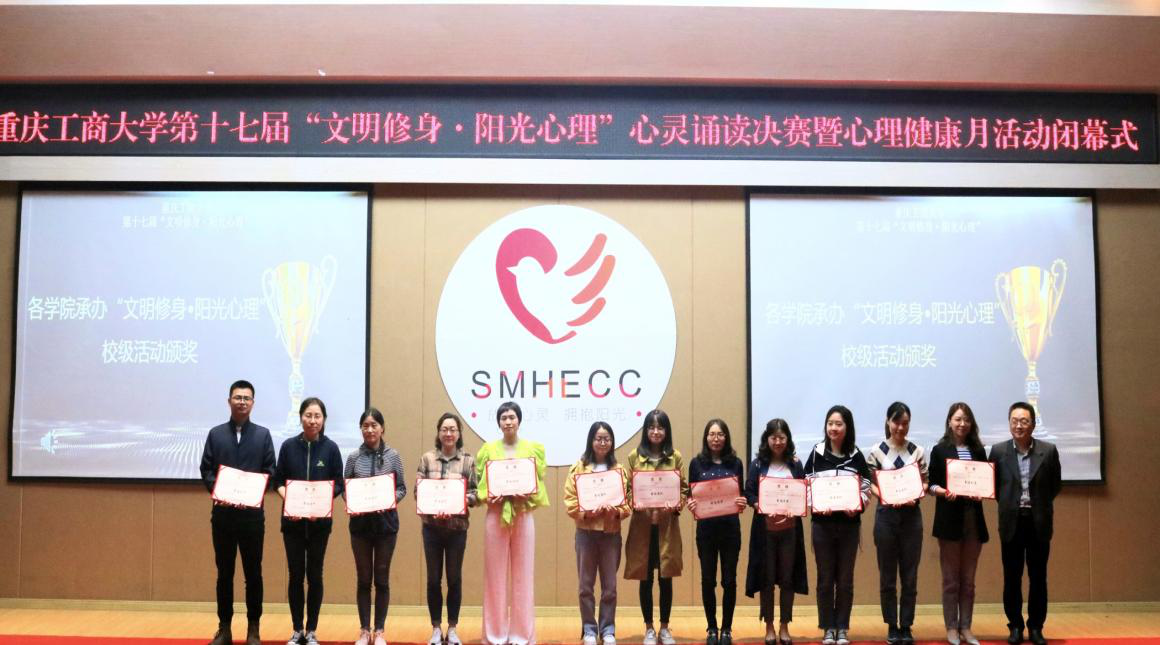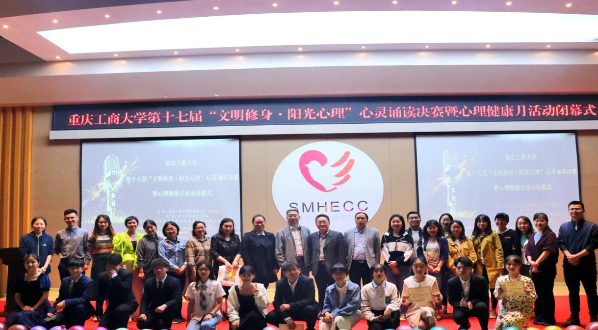 5 月 27 日下午6点30,由重庆工商大学党委学工部(学生处)主办,OK138太阳集团心理工作站、大学生自我管理与服务委员会心理健康部承办的第十七届“文明修身·阳光心理”心理健康活动月之“心灵诵读”决赛暨活动月闭幕式,在南岸校区田家炳书院 209 报告厅圆满落下帷幕。党委学工部部长申卫东、副部长尹建平、研工部副部长曾胜、校团委素拓部负责人王微老师、各学院副书记,大学生心理健康教育与咨询中心专兼职心理老师,以及各学院心理健康工作负责老师和各学院学生代表,共同参与了本次活动。
