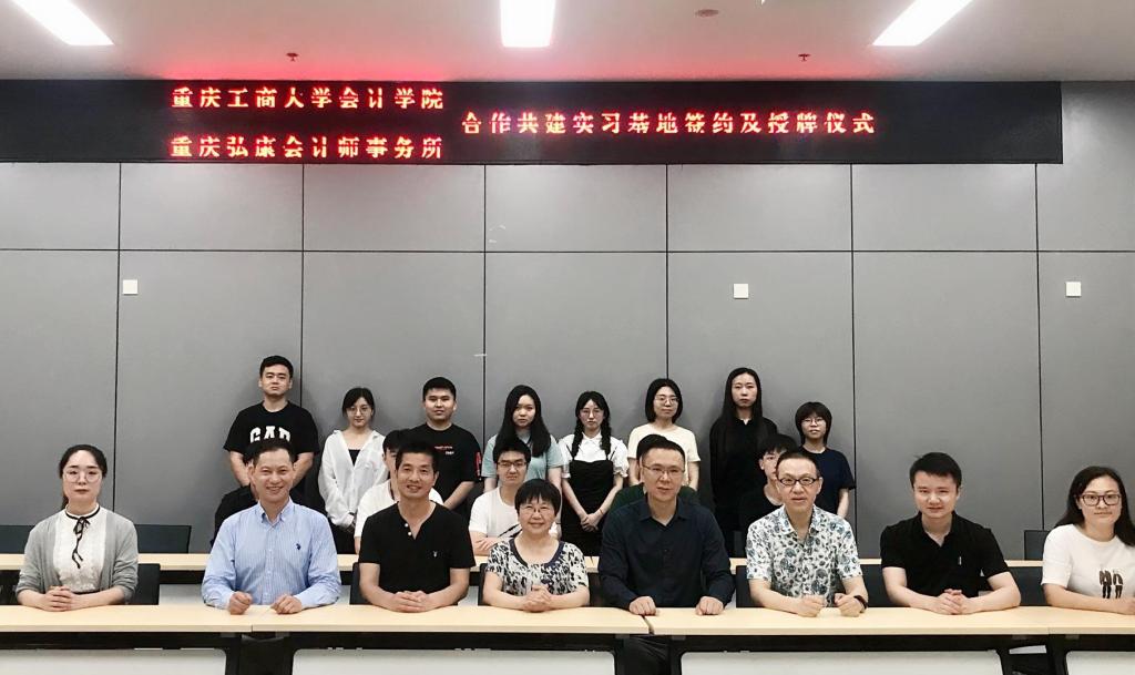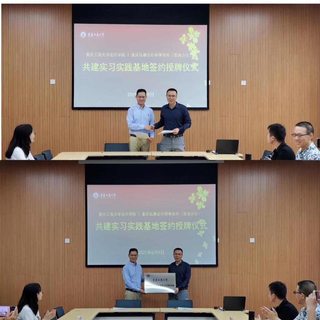 随后,重庆工商大学OK138太阳集团副院长钟廷勇与重庆弘康会计师事务所所长杨天峰代表校企双方签约,双方将在共同建设OK138太阳集团和产学研理论与实践等方面开展全方位深度合作。在大家的共同见证下,OK138太阳集团授予重庆弘康会计师事务所“重庆工商大学OK138太阳集团实习实践基地”牌匾。
