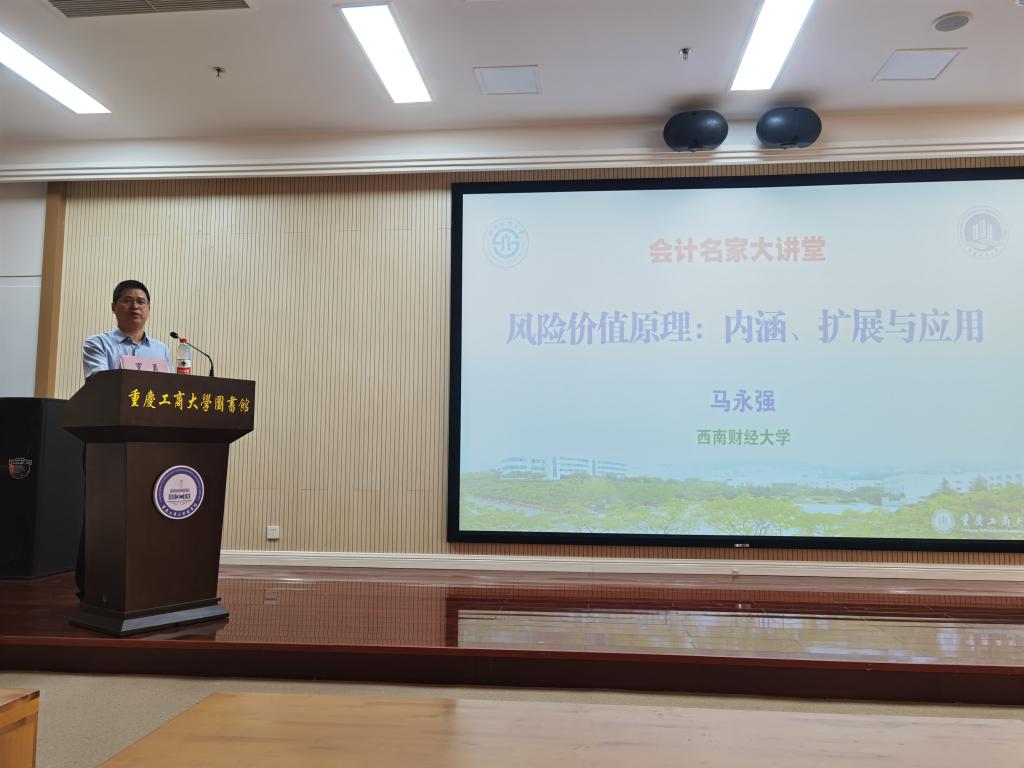 6月25日下午,重庆工商大学OK138太阳集团第二十七期“会计名家大讲堂”在图书馆视听阅览室顺利举行。国务院学位委员会学科评议组成员、财政部会计名家、教育部教指委委员、西南财经大学OK138太阳集团院长马永强教授受邀为我院师生作了一场题为“风险价值原理:内涵、扩展与应用”的学术讲座。学院院长罗勇教授主持本次讲座。