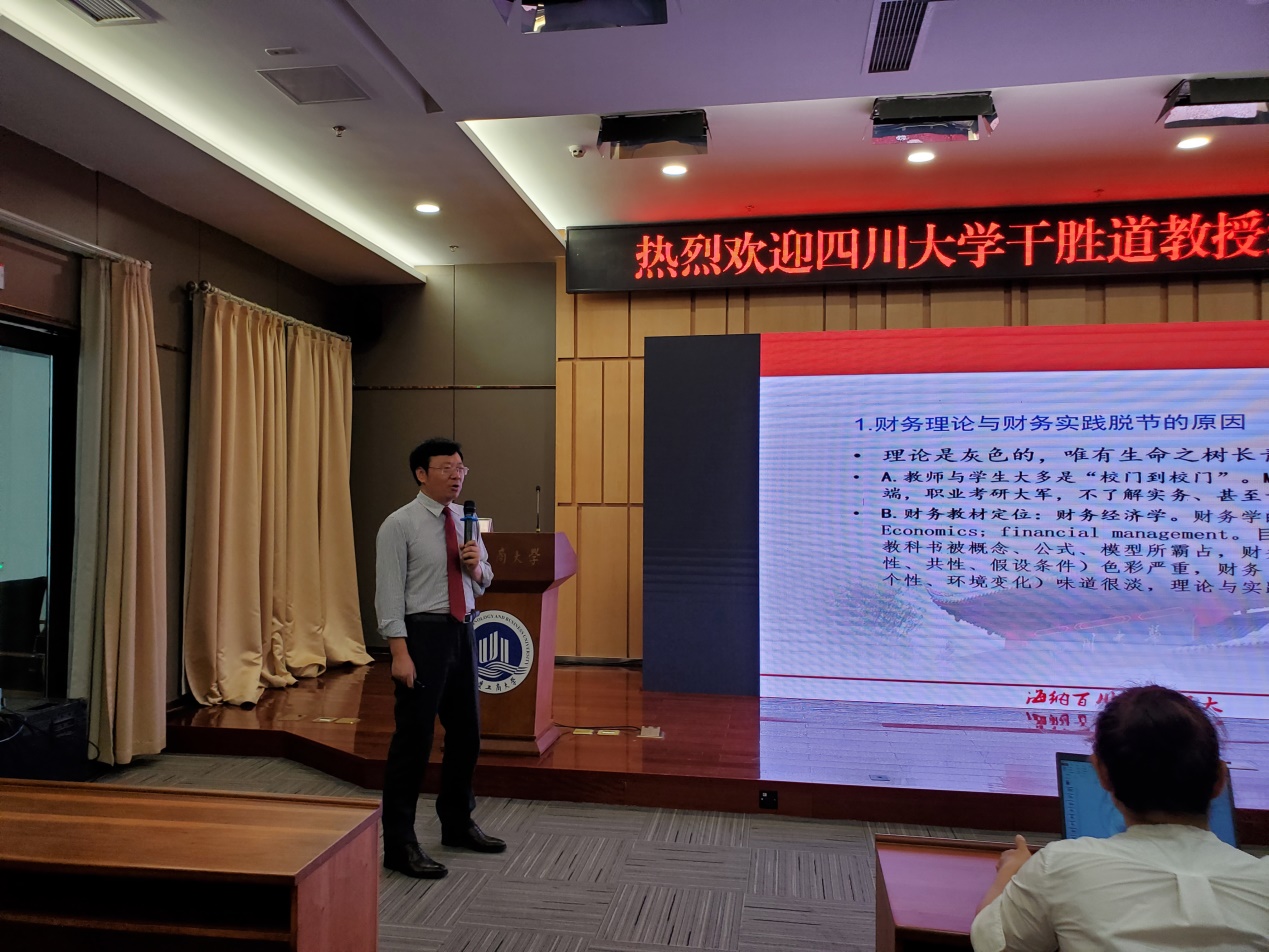 2021年7月9日下午,重庆工商大学OK138太阳集团第二十九期会计名家大讲堂在图书馆第一会议室进行,四川大学干胜道教授应邀为我院师生做了题为“财会论文选题:从实际出发”的专题讲座。