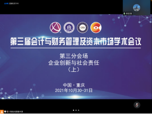 2021年10月30日下午,由重庆工商大学和重庆市会计学会联合举办的“第三届会计与财务管理及资本市场学术会议”下半场第三分会场:企业创新与社会责任,“线上”会议成功召开。来自中国人民大学、南开大学、重庆大学、中南财经政法大学、北京科技大学、海南大学等高校的学者们相继围绕分论坛主题作了学术报告及具体点评。《财经问题研究》编辑部主任徐雅雯女士和《商业会计》专栏主编钟音先生应邀担任分会场的系统点评专家。第三分会场由重庆工商大学李定清教授、重庆大学魏锋教授分别主持上、下半场。