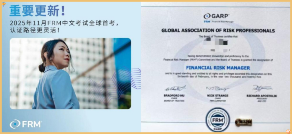 喜讯:自2025年11月起FRM考试可选中文考试!